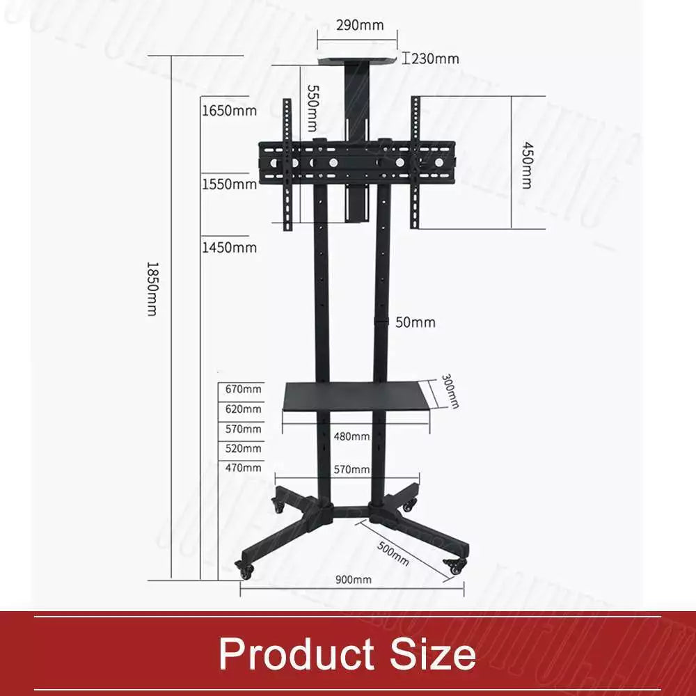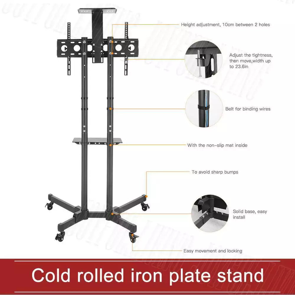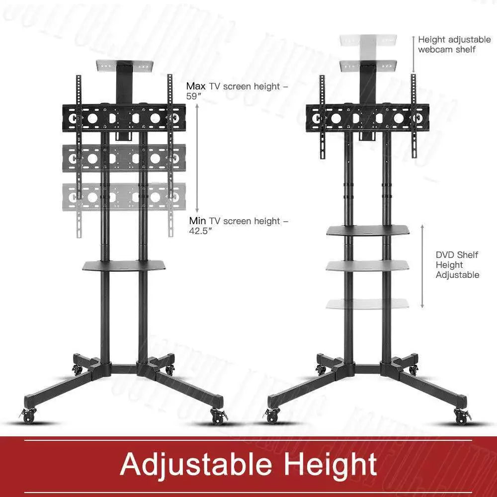حامل تلفزيون بلازما LCD أسود LED مقاس 32 إلى 65 بوصة مع عربة متنقلة بعجلات