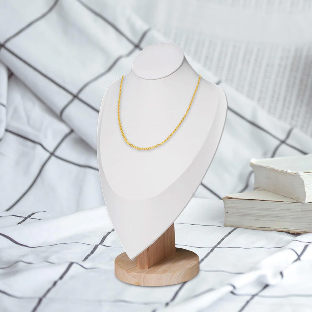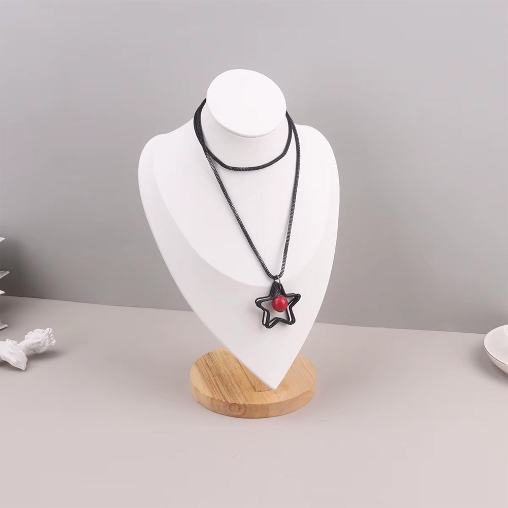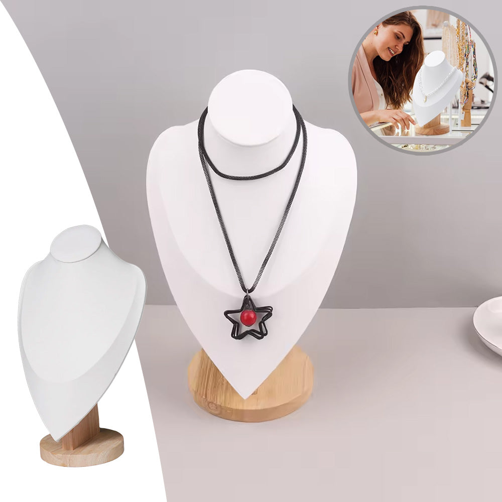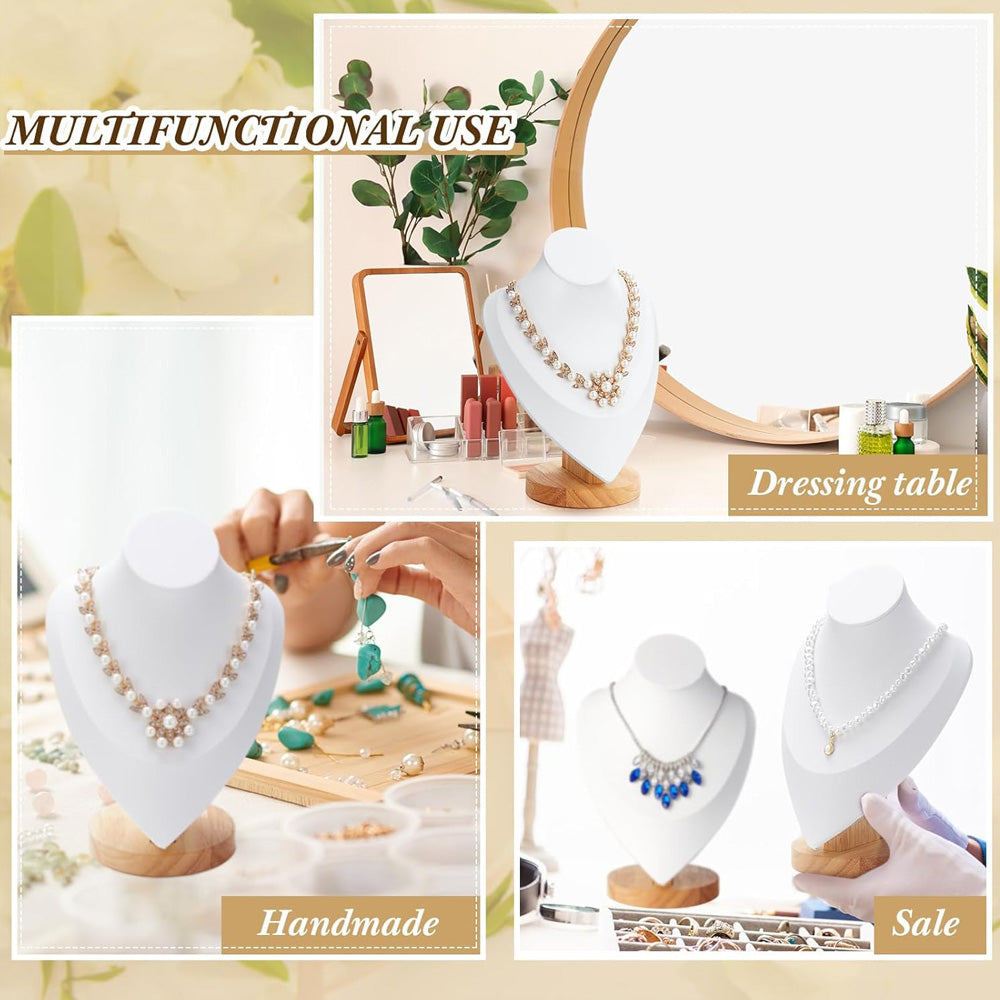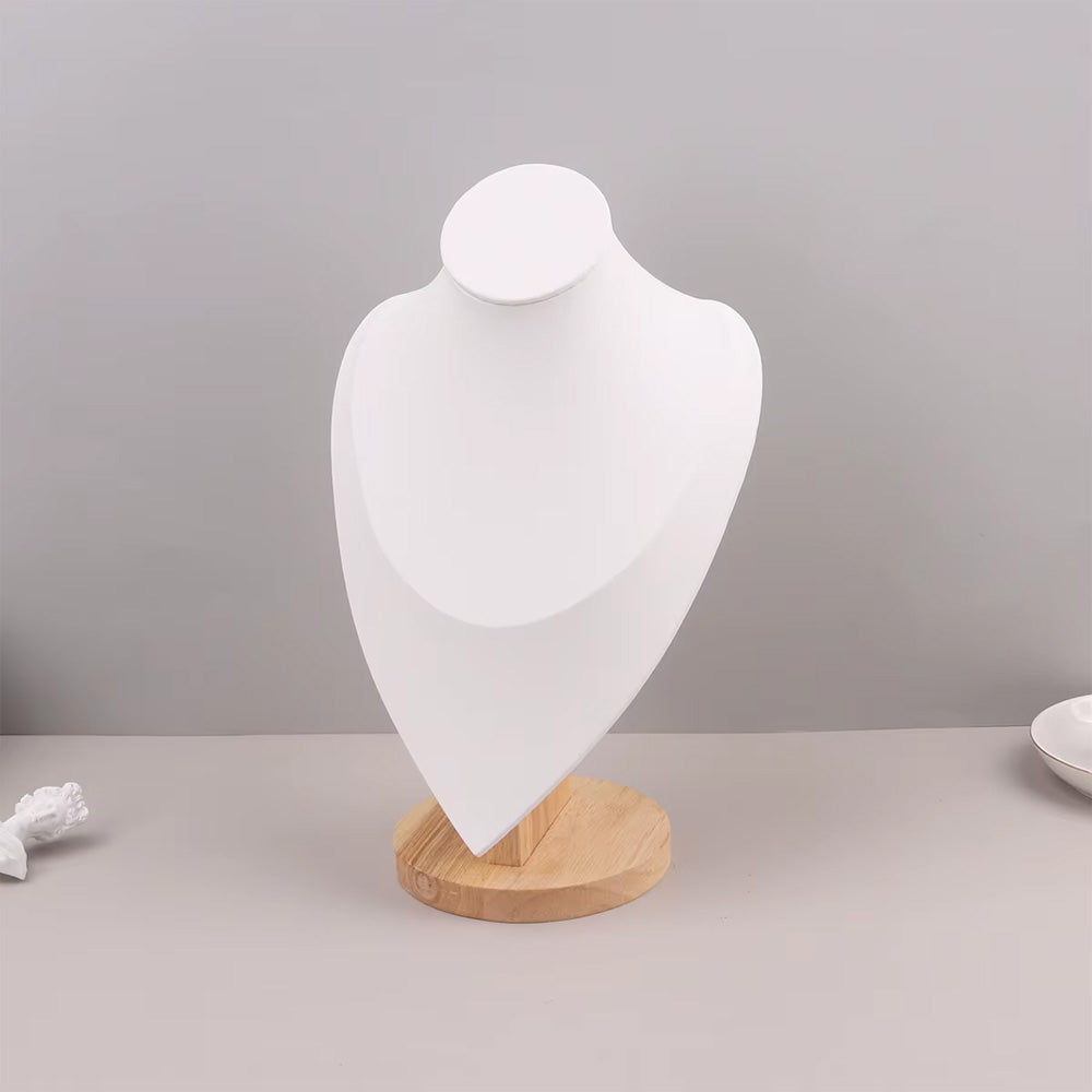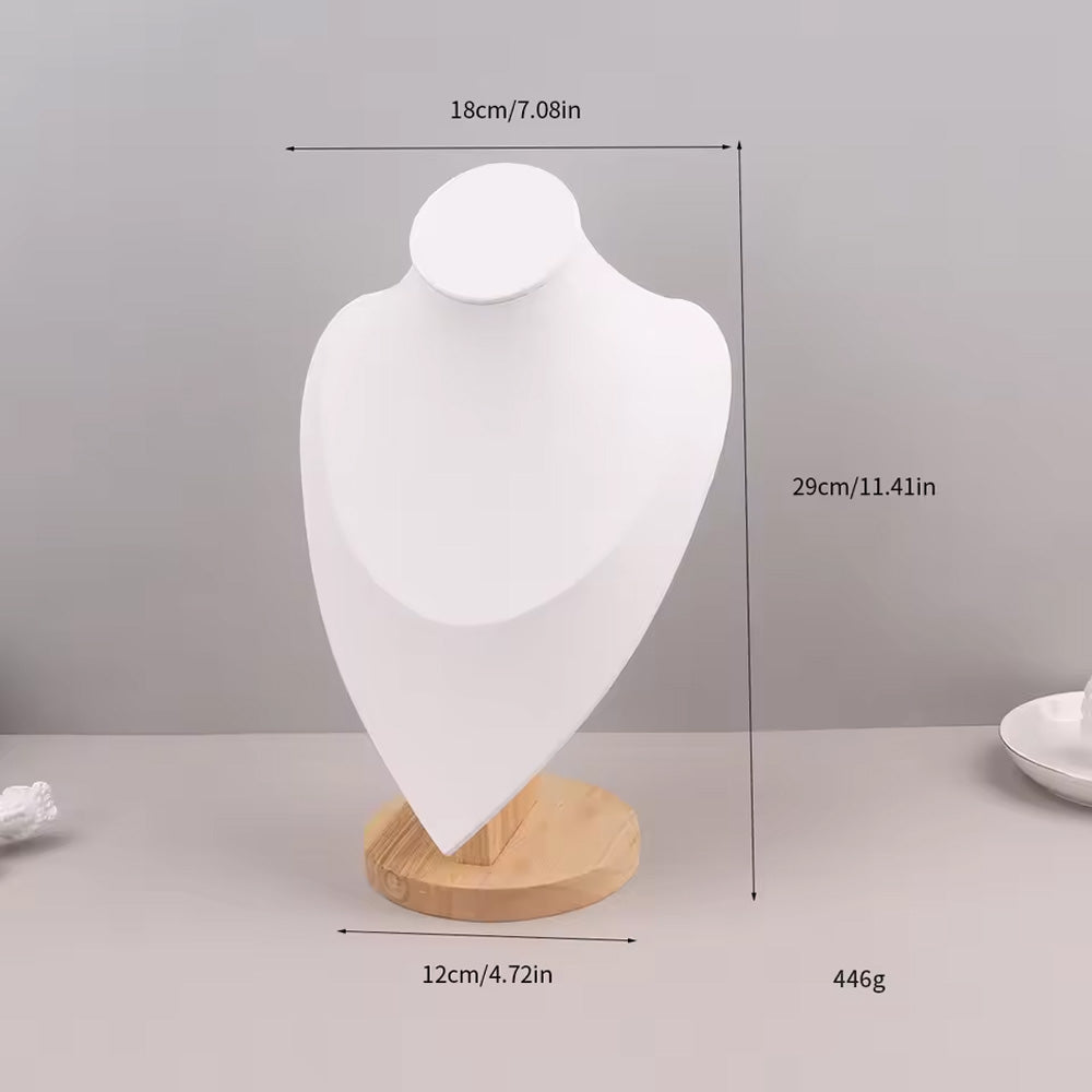 مادة متينة وأنيقة: تم تصميم تمثال المجوهرات المخملي بقاعدة خشبية من الخيزران المتينة، مما يضمن المتانة وطول العمر؛ لا يعزز سطح المخمل الأبيض جمال قلادتك فحسب، بل يضيف أيضًا جاذبية جمالية إلى ديكور غرفتك