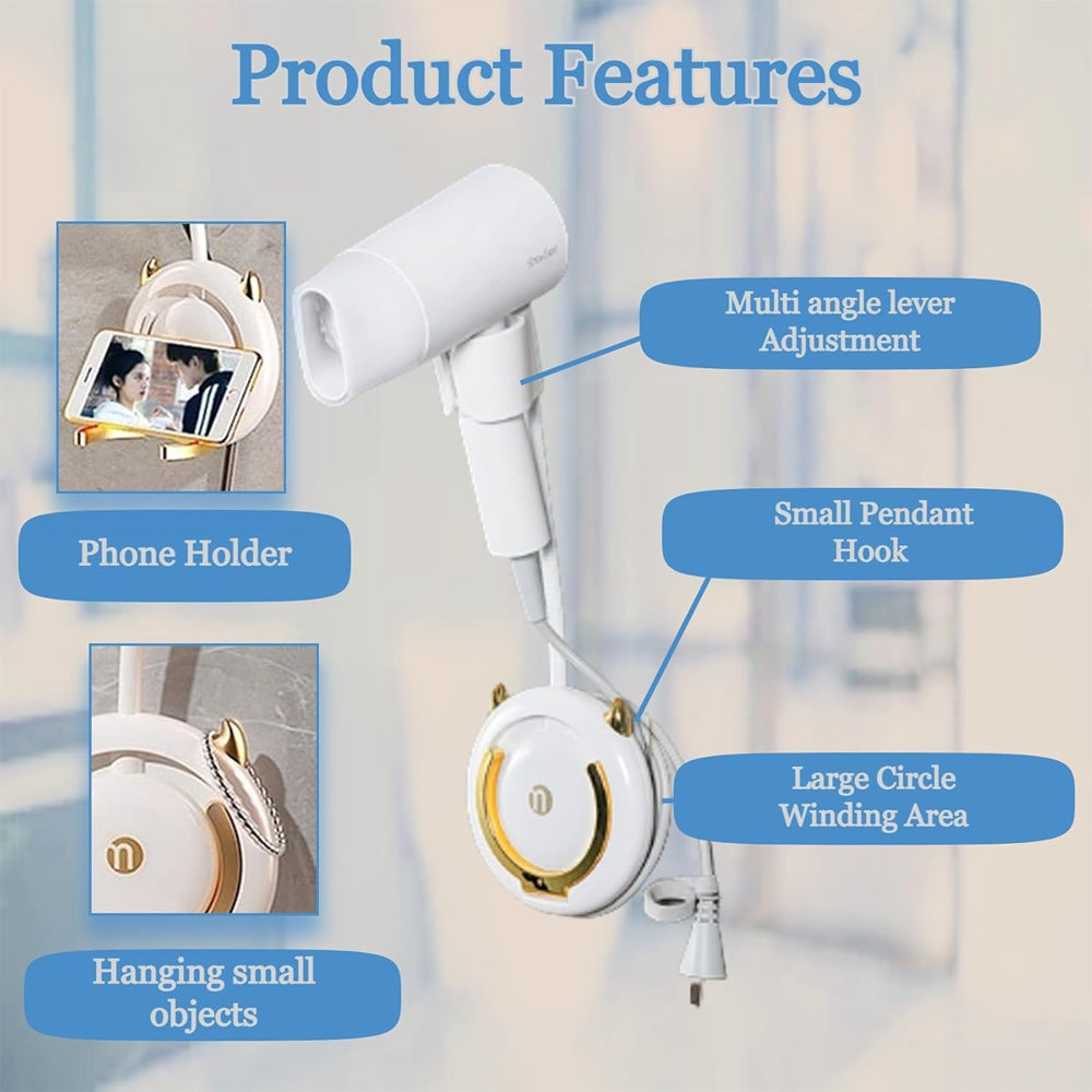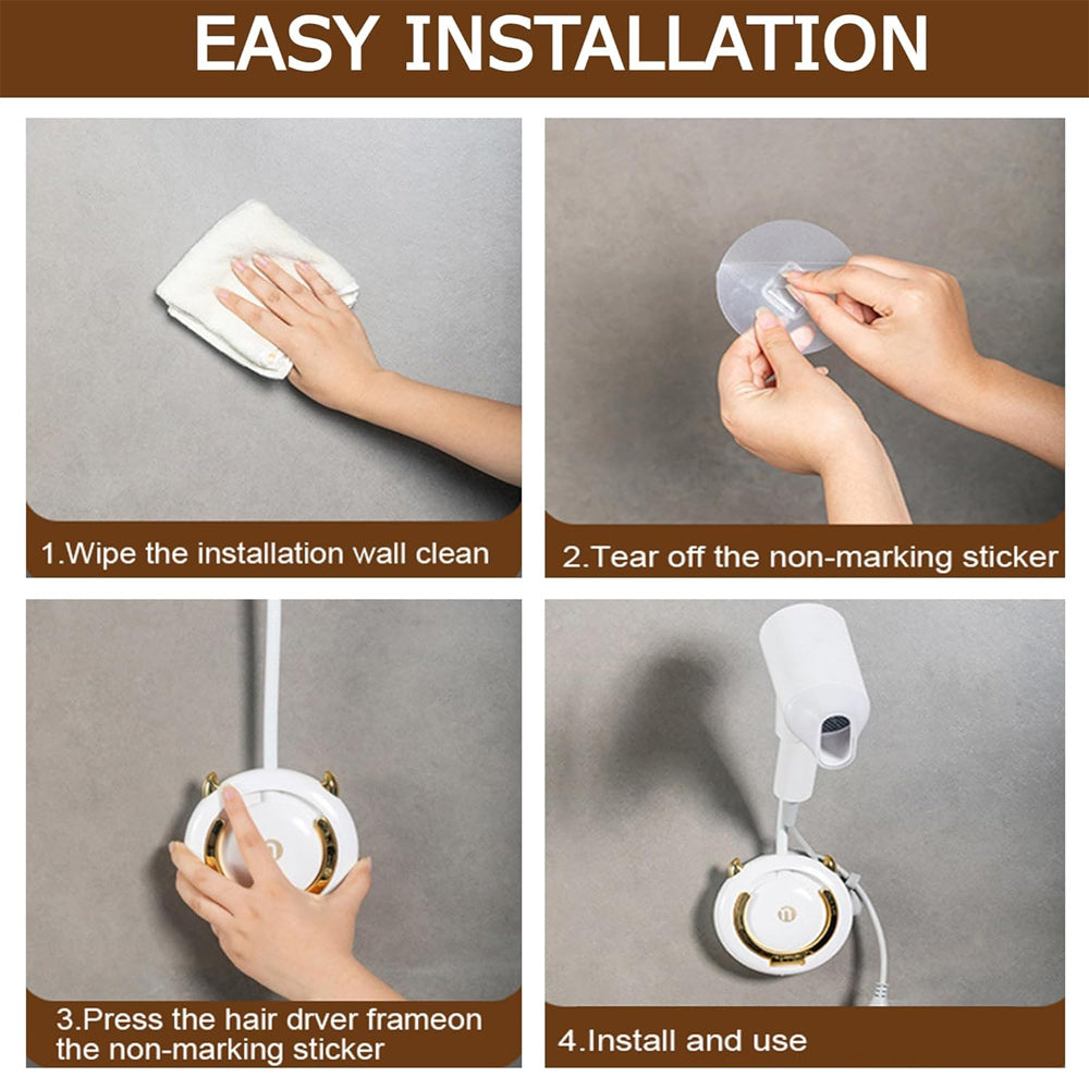 حامل مجفف الشعر ذاتي اللصق ، 360 درجة