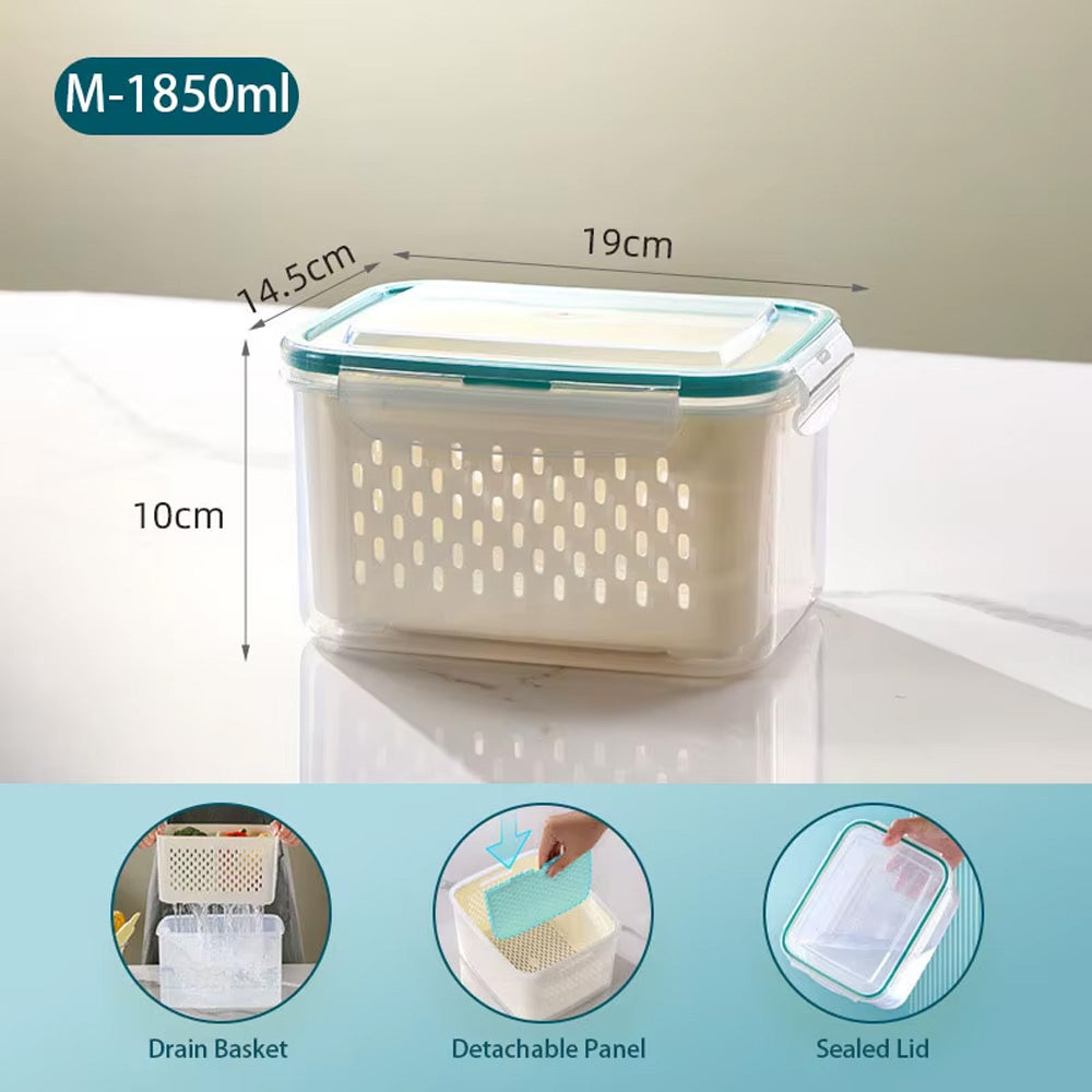 حافظ على طعامك طازجًا ومنظمًا مع سلة التصريف المحكمة الإغلاق هذه. مصممة بغطاء محكم الإغلاق مانع للتسرب، وسلة داخلية قابلة للإزالة، ولوح قابل للفصل، وهي مثالية لغسل وتصريف وتخزين الفواكه والخضراوات واللحوم وبقايا الطعام. آمنة للاستخدام في المجمد (-20 درجة مئوية) والميكروويف (حتى 120 درجة مئوية)، هذه الحاوية متينة ومتعددة الاستخدامات، ومثالية لأي مطبخ.
