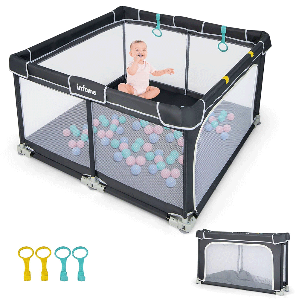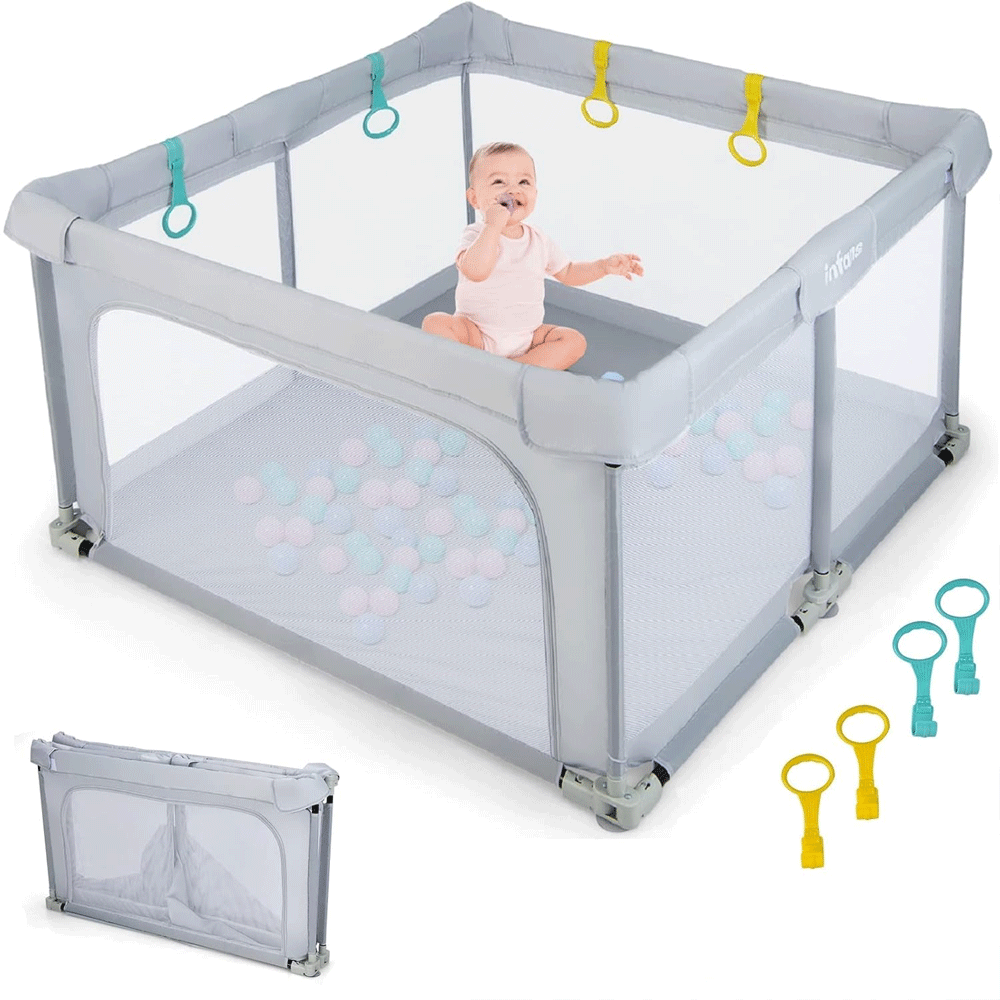 ألعاب الحظيرة للأطفال، بوابة أطفال قابلة للطي للأطفال الصغار، ألعاب الحظيرة الكبيرة جدًا مع ساحة لعب لباب سياج الداخلي، لون رمادي