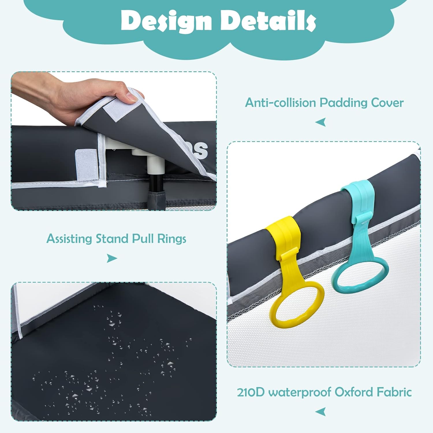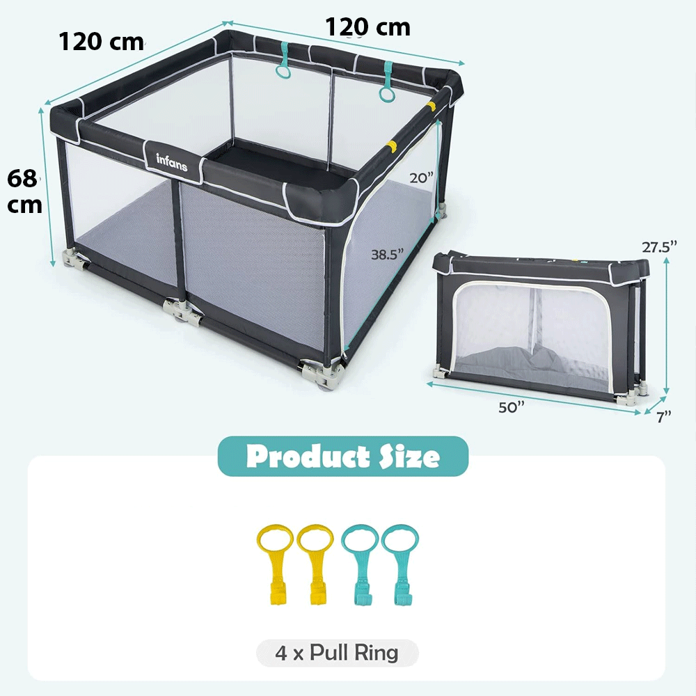 - ساحة اللعب المفضلة للطفل: حظيرة لعب الأطفال هذه التي تبلغ مساحتها 120×120×68 سم مع إطلالة واسعة بما في ذلك بوابة الأطفال من الزحف والمشي واللعب الحرة. يمكنها استيعاب شخص وطفل بسهولة. تم تصميم سياج ارتفاع الاهتزاز 27.5 بوصة خصيصًا للأطفال من سن 6 أشهر إلى 6 سنوات. تأتي حظيرة ألعاب الأطفال المحمولة هذه ذات 4 حلقات سحب و50 عالمية محيطية، وهي جديدة للأطفال صغارين والمبدعين.
