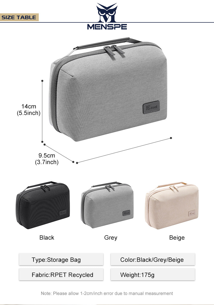 حقيبة لتخزين الكابلات والبطاريات بسحاب واحد بسحاب واحد، خفيفة الوزن ومتعددة الاستخدامات لحمل الإكسسوارات الإلكترونية أثناء الرحلات الخارجية