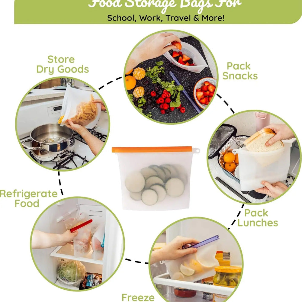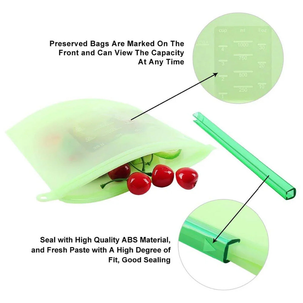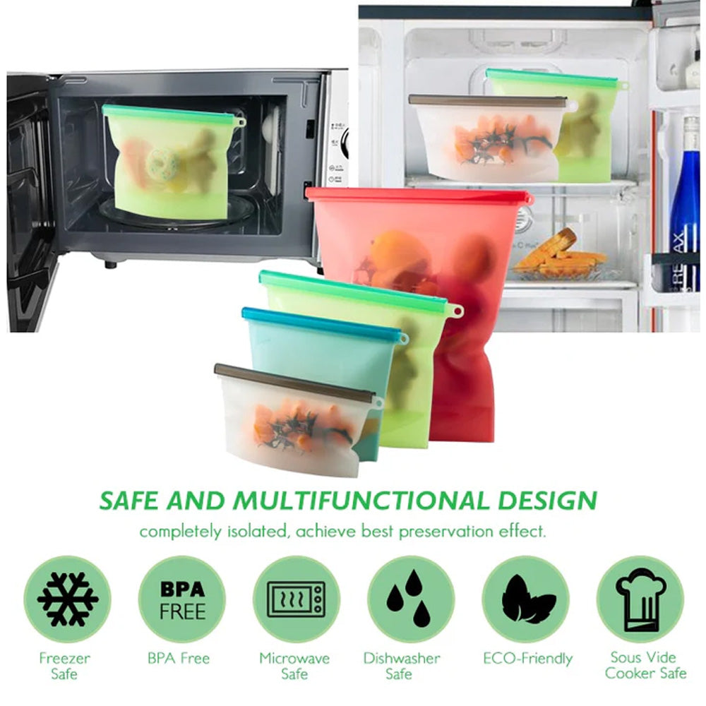 حقيبة تخزين طعام طازجة قابلة لإعادة الاستخدام من السيليكون بسعة 3000 مل/4000 مل مع سحاب