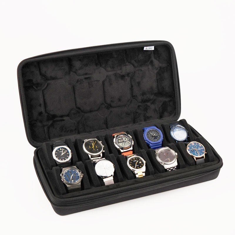 10 ساعات فى حالة السفر ، صندوق منظم تخزين محمول لحقيبة حمل الساعة المحمولة للرجال والنساء مع وسائد رغوية ناعمة تناسب جميع أحجام الساعات حتى 60 مم الوجه