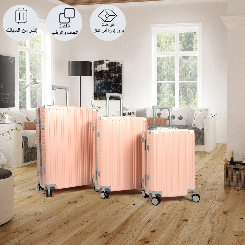 حقيبة سفر بإطار من الألومنيوم مع قفل TSA، مجموعة من 3 قطع - 20 بوصة، 24 بوصة، 28 بوصة