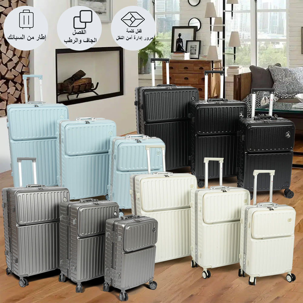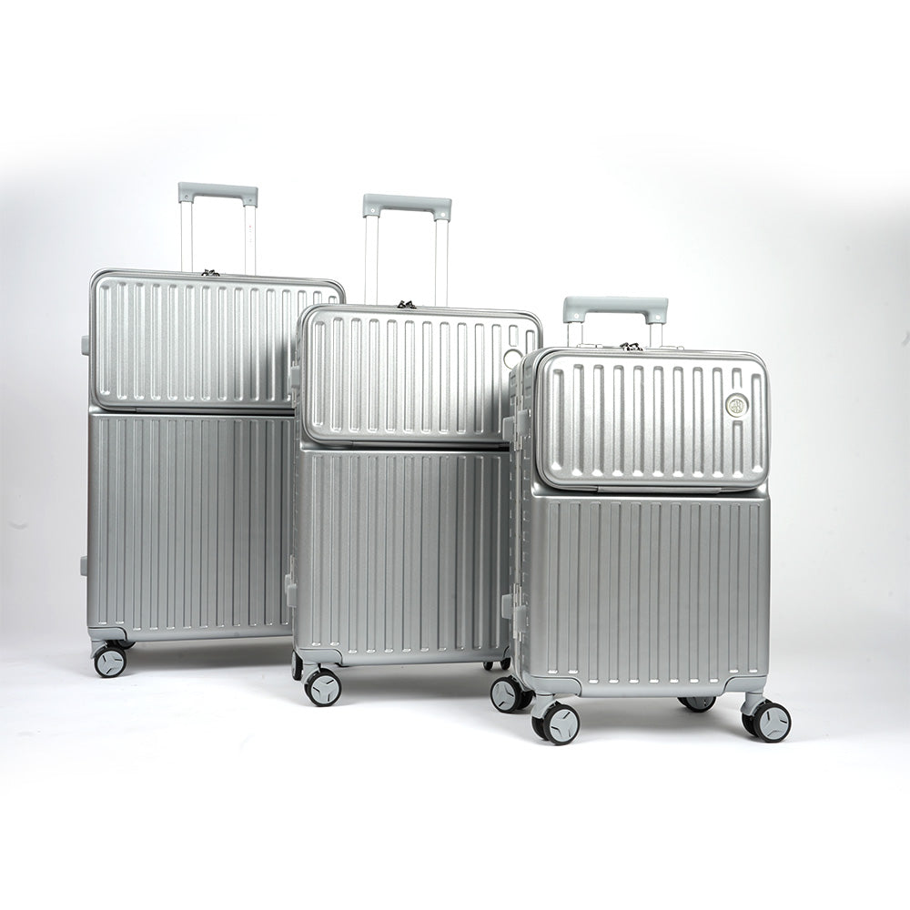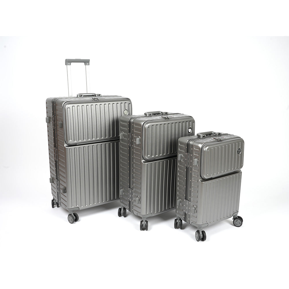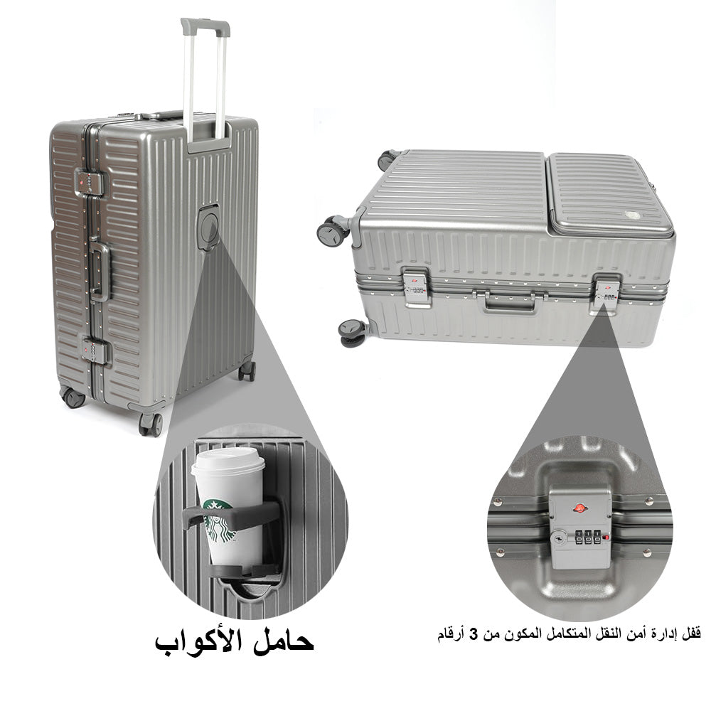 حقيبة سفر بإطار من الألومنيوم مع قفل TSA، مجموعة من 3 قطع - 20 بوصة، 24 بوصة، 28 بوصة