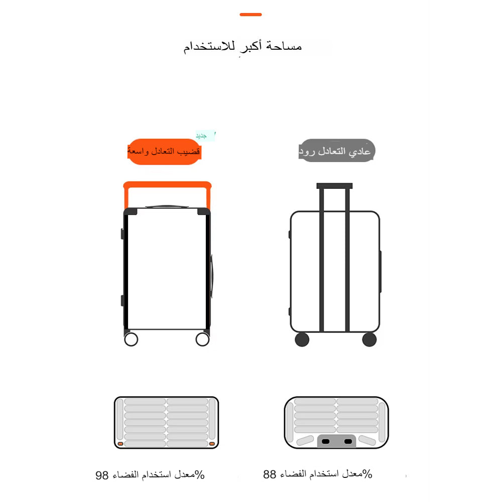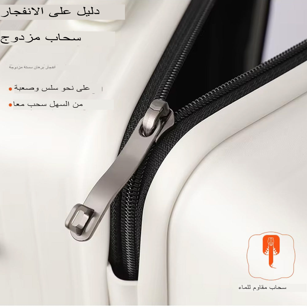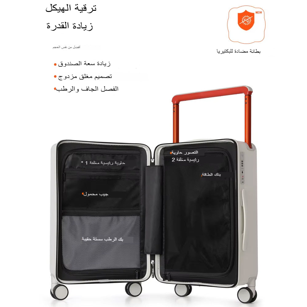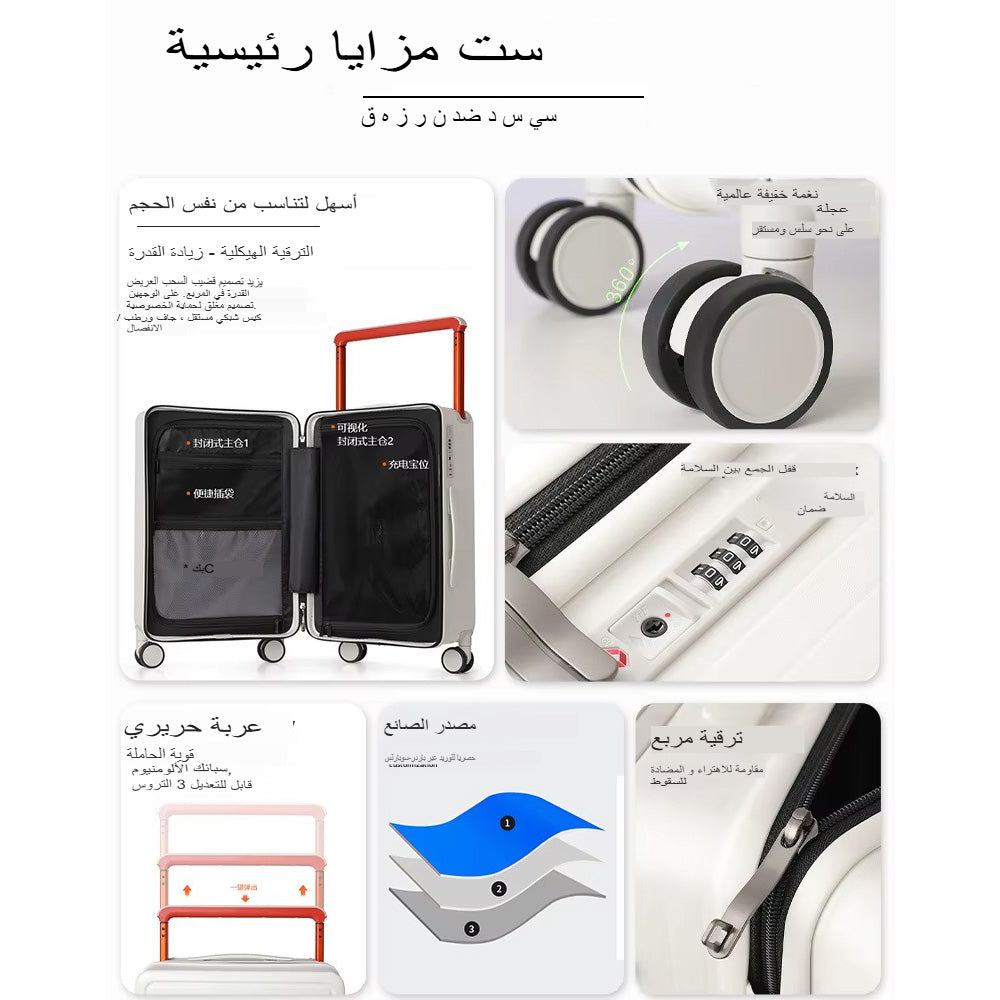 حقيبة سفر متعددة الوظائف من البولي كربونات النقية، مزودة بقضيب ربط عريض، وجيب أمامي مفتوح، ومناسبة للسفر.