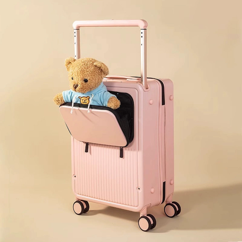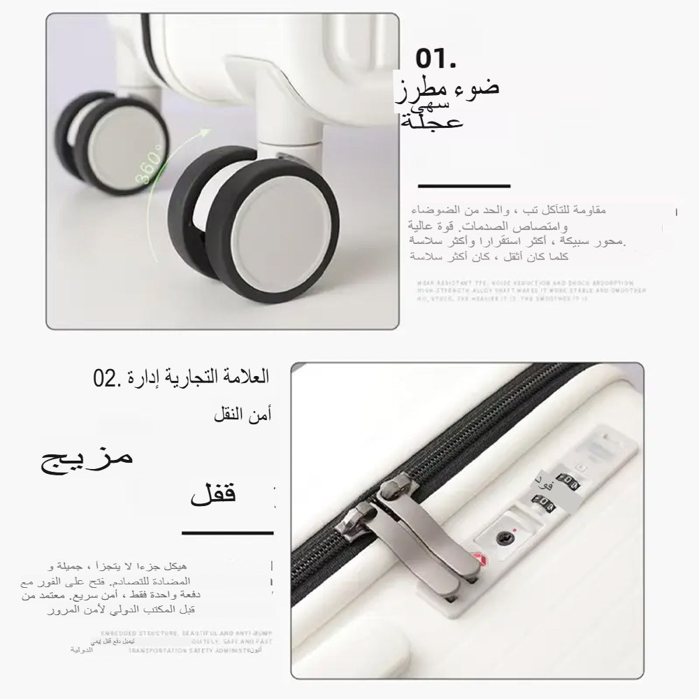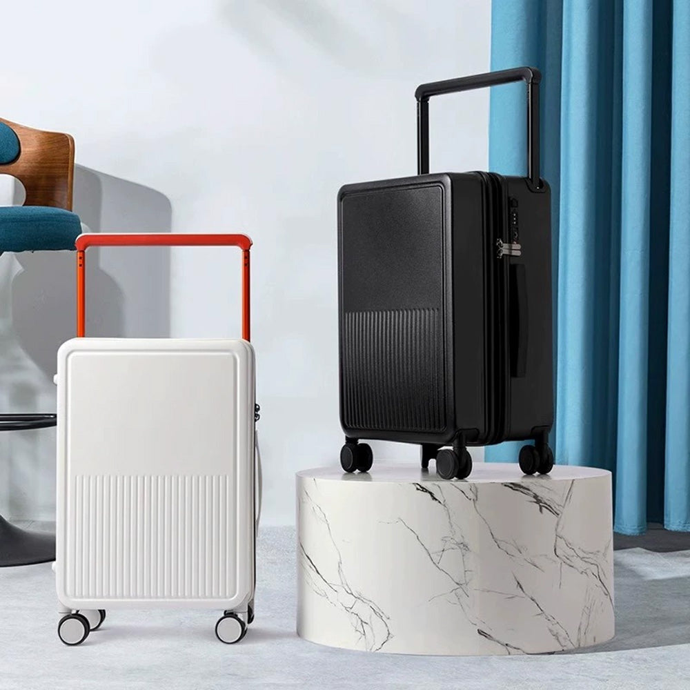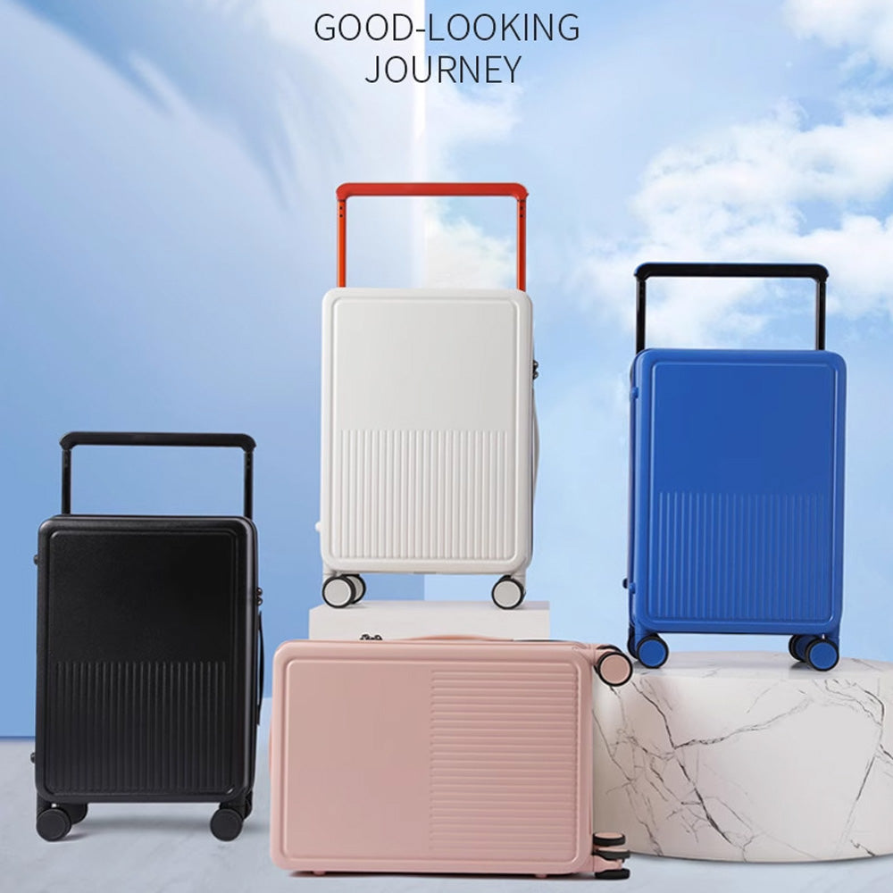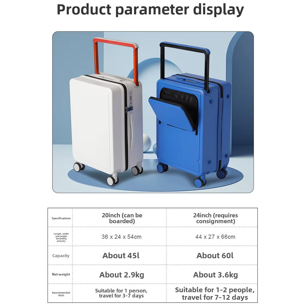 حقيبة سفر متعددة الوظائف من البولي كربونات النقية، مزودة بقضيب ربط عريض، وجيب أمامي مفتوح، ومناسبة للسفر.