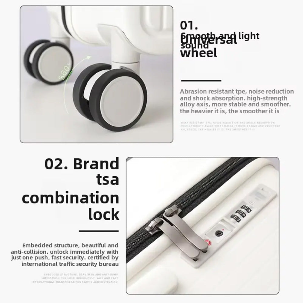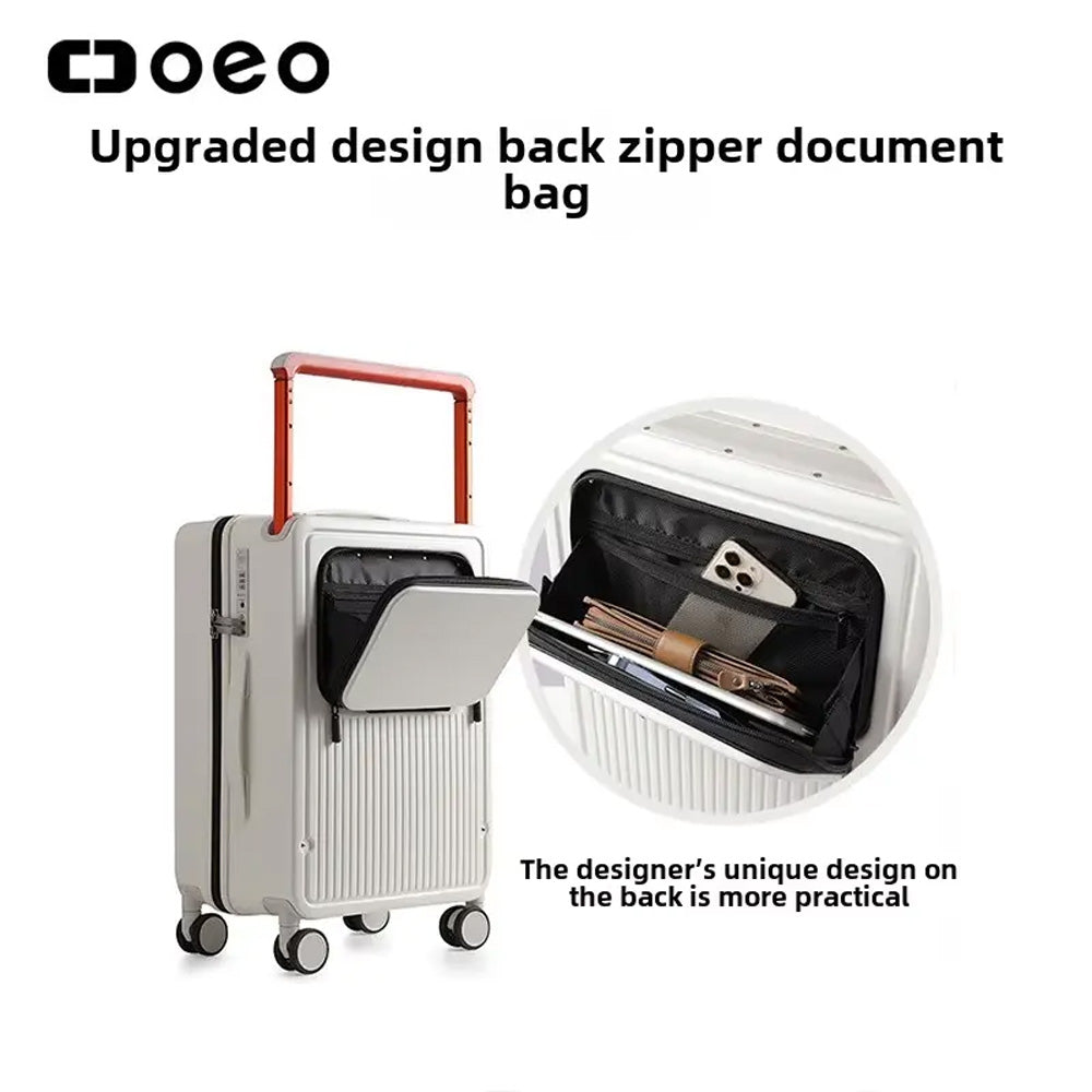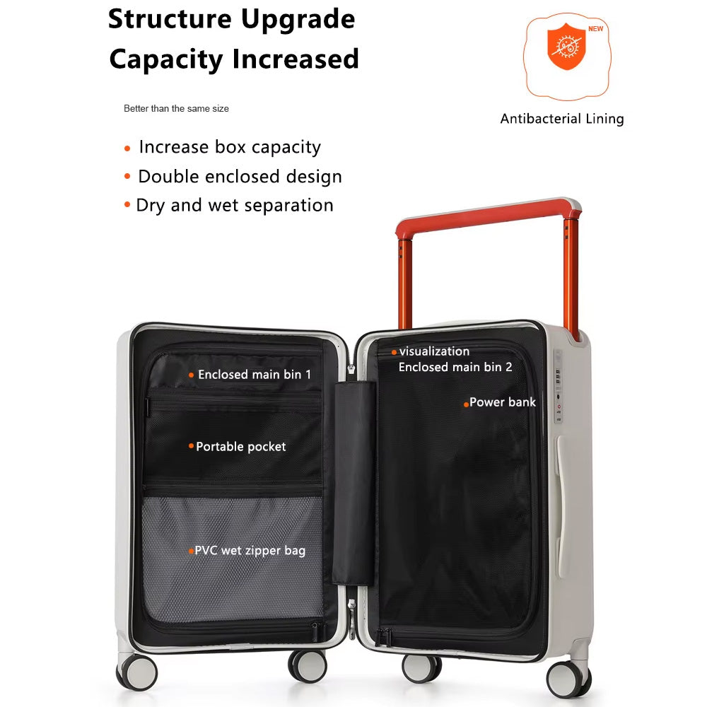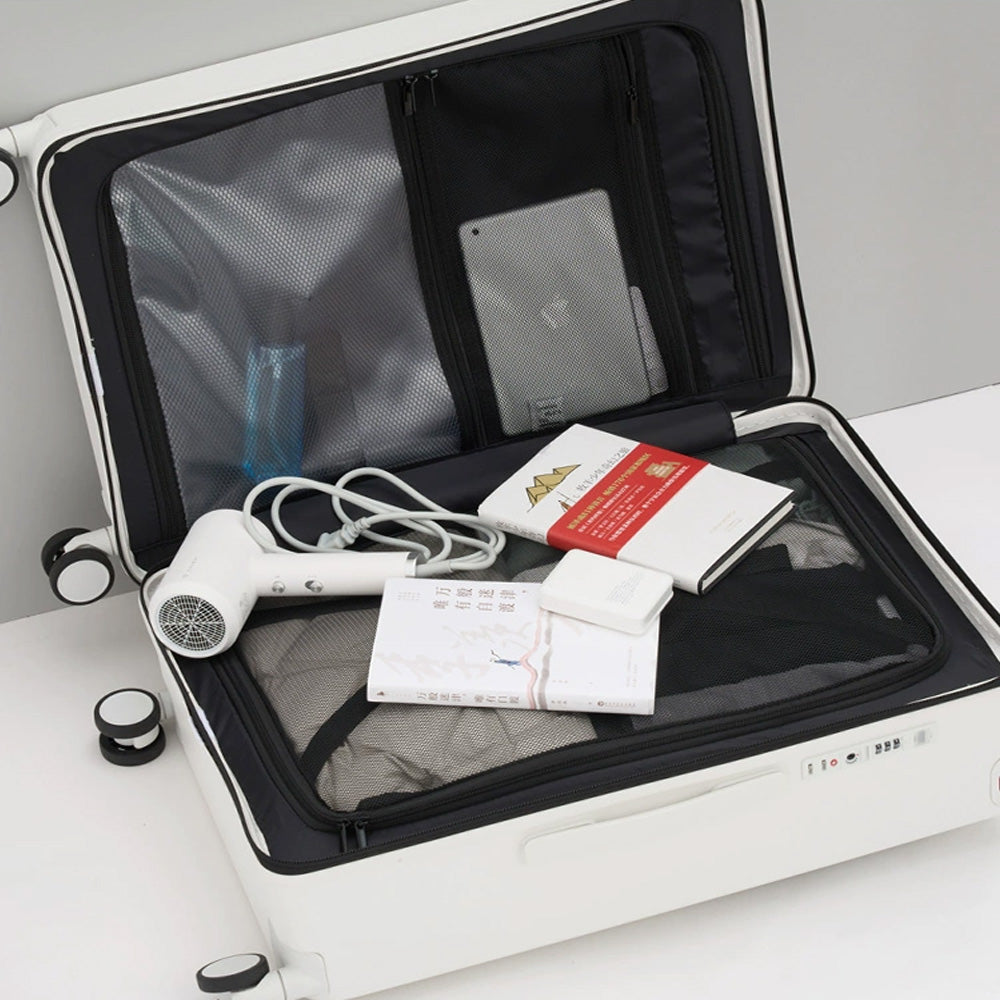 حقيبة سفر متعددة الوظائف من البولي كربونات النقية، مزودة بقضيب ربط عريض، وجيب أمامي مفتوح، ومناسبة للسفر.