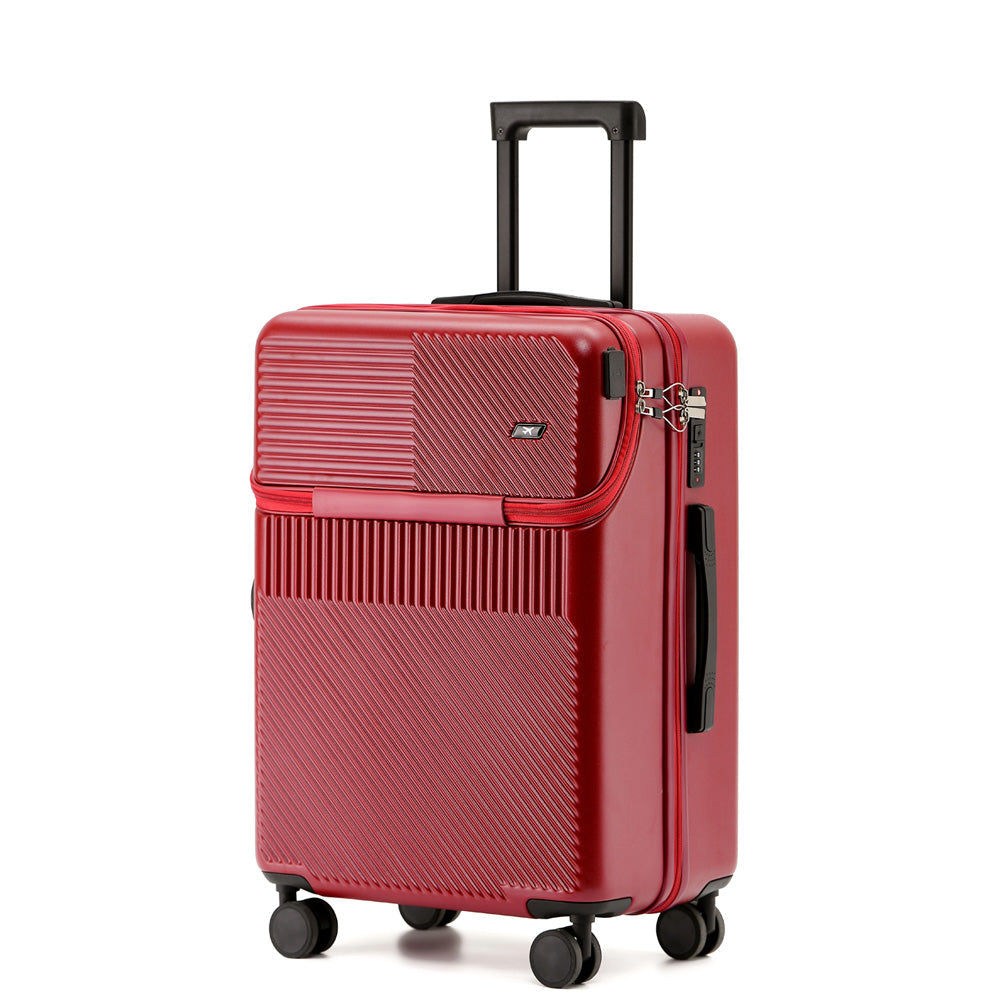 سافر بكل سهولة مع هذه الحقيبة الذكية ذات الفتحة الأمامية، المصممة خصيصًا للمسافرين العصريين. مصنوعة من مادة ABS المتينة، وتتميز بجيب أمامي عملي يتيح الوصول السريع إلى جهاز الكمبيوتر المحمول والأغراض الضرورية. يضمن منفذ الشحن USB المدمج بقاء أجهزتك مشحونة أثناء التنقل، بينما يضمن قفل TSA سفرًا آمنًا. توفر العجلات الدوارة الصامتة بزاوية 360 درجة والمقبض التلسكوبي القابل للتعديل سهولة في الحركة. أنيقة وعملية وموثوقة - مثالية لرحلات العمل والإجازات والسفر اليومي.