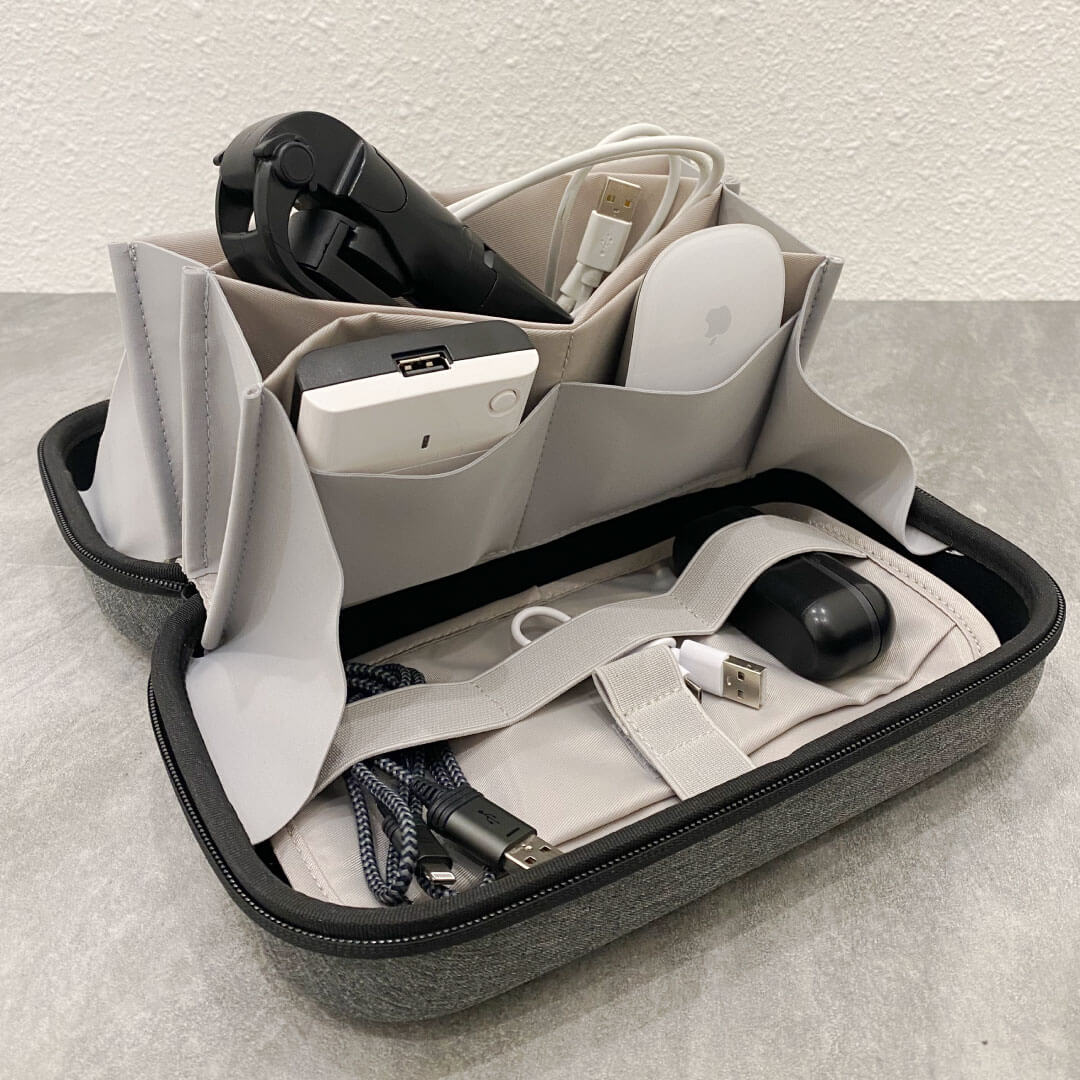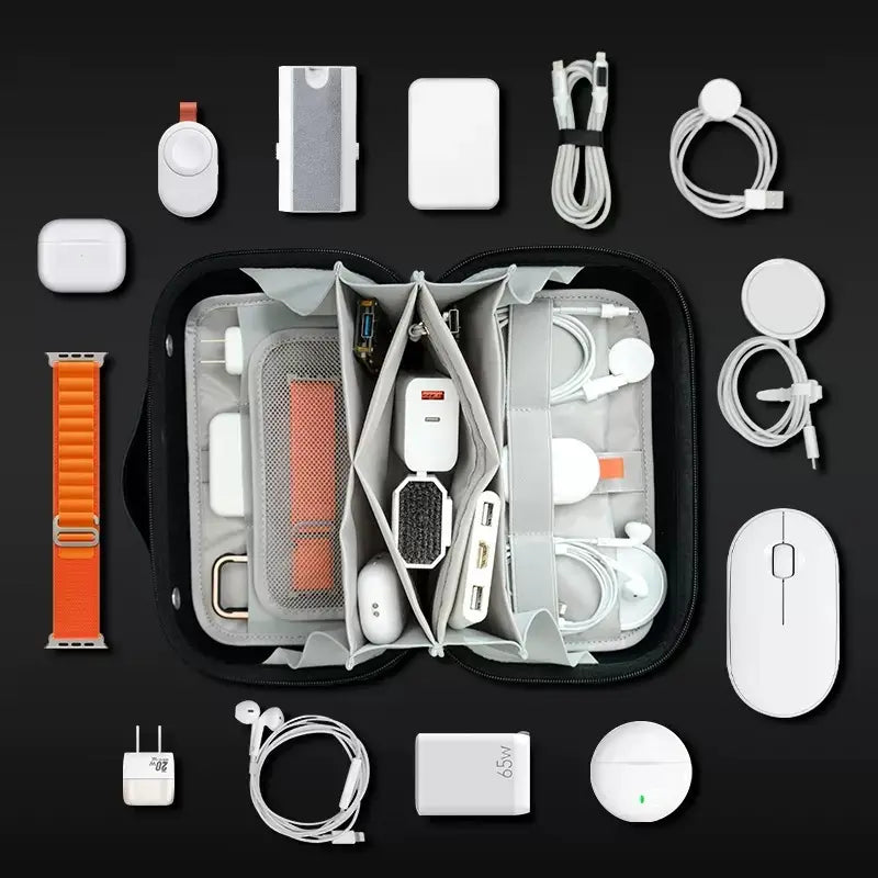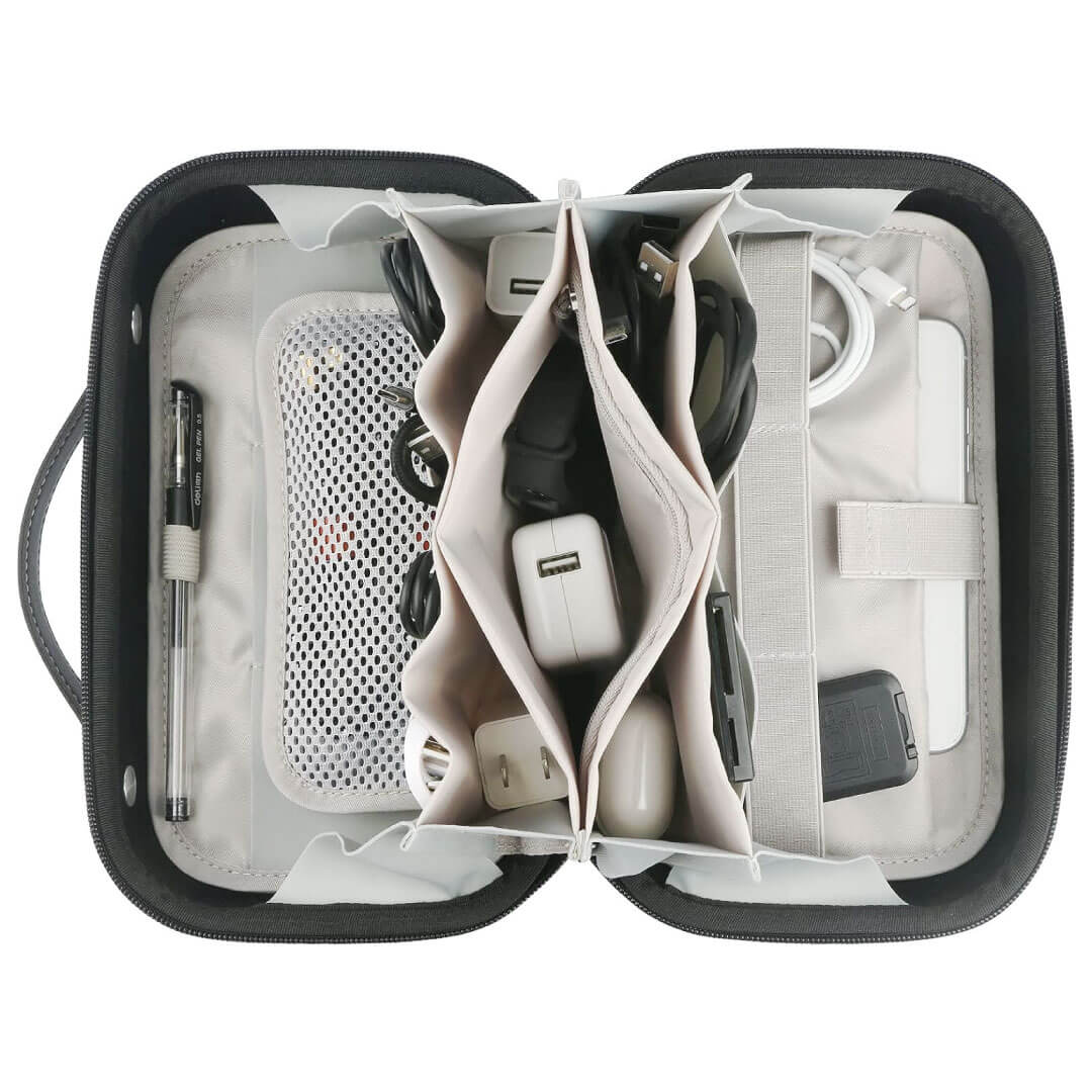 هناك 23 مساحة تخزين متعددة الاستخدامات قابلة للحمل في الداخل، والتي يمكن بسهولة تخزين الشواحن والأقراص الصلبة وكابلات USB ومستلزمات الطاقة والفئران وسماعات الأذن وبطاقات الألعاب وأقلام وما إلى ذلك. إنها مثالية لملحقات جهاز الكمبيوتر الخاص بك!