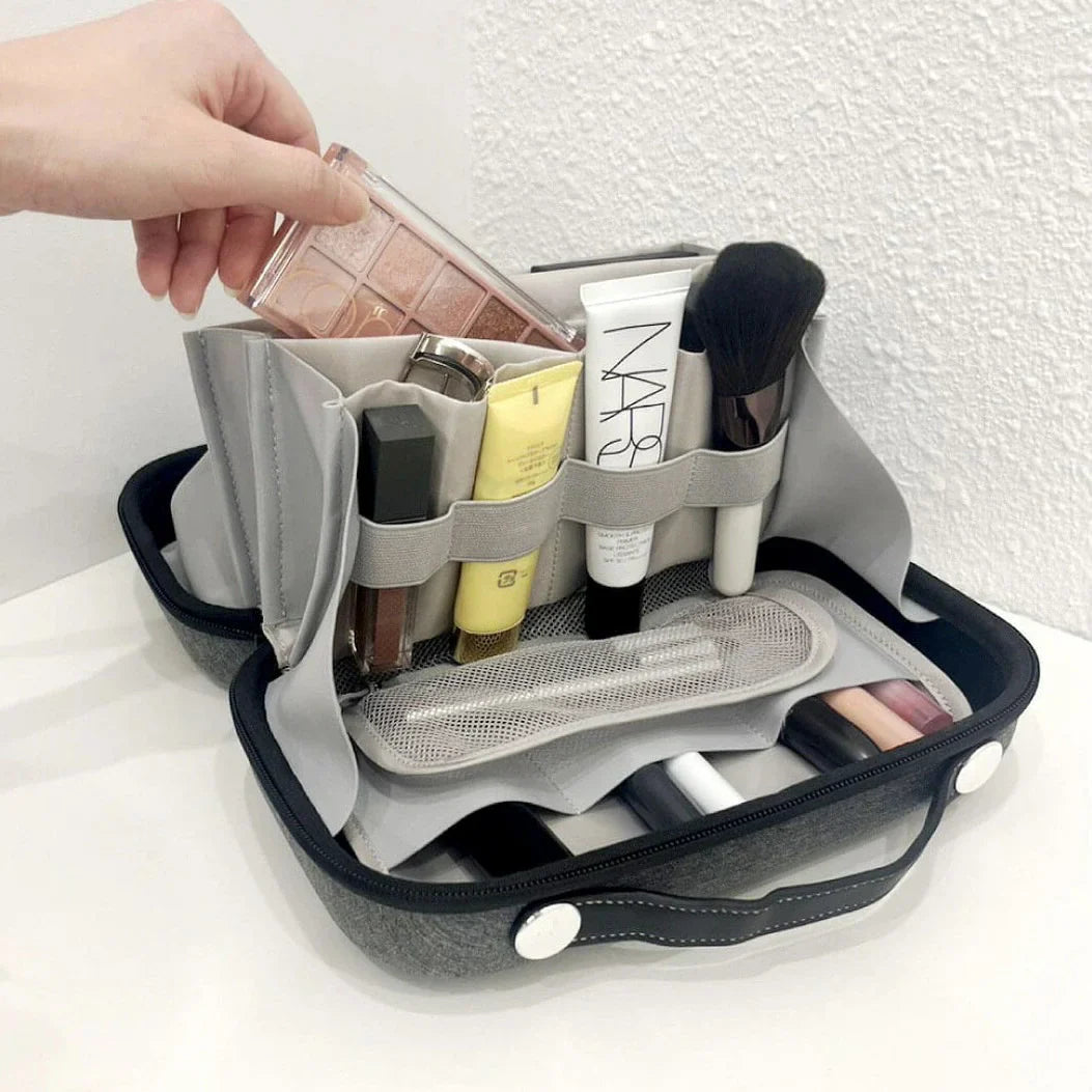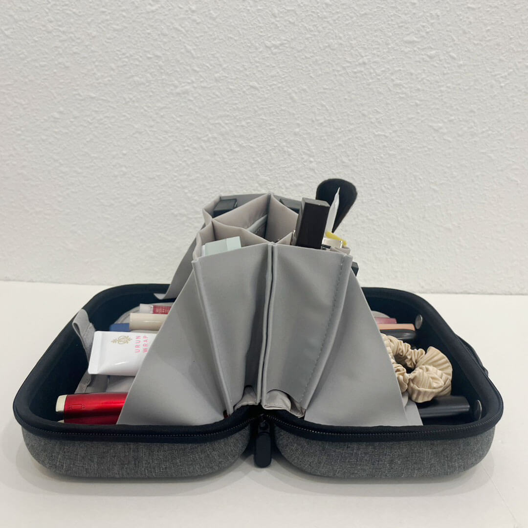 يتميز الجزء الداخلي بمثال الأوريغامي ويمكن فتحه بمقدار 180 درجة مثل الكتاب، مما يجعله سهل التنظيم ويجعلها أكثر سهولة لوضع وإدخال العناصر الصغيرة حول جهاز الكمبيوتر الخاص بك. عند البحث عن شيء ما، فهو يتميز بفتحة 180 درجة، لذلك يمكنك العثور عليه بمجرد فتح السحاب!