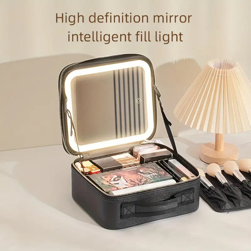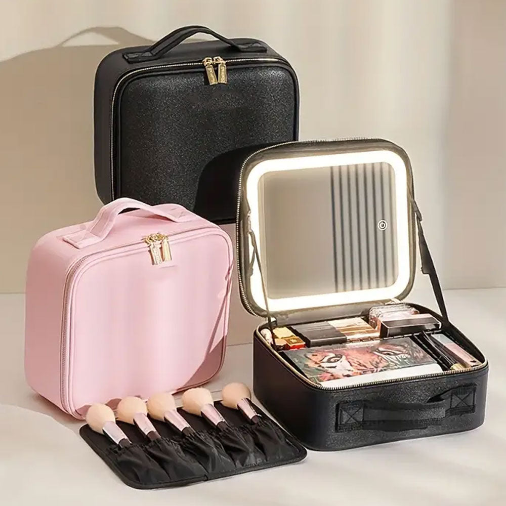 حقيبة ماكياج للسفر مع مرآة مضيئة