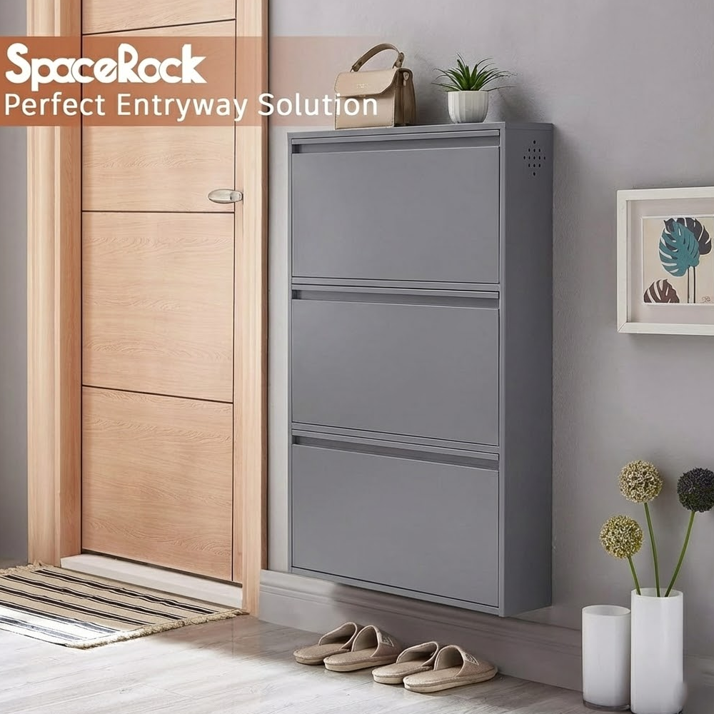 أضيفي لمسة أناقة وتنظيم لمدخل منزلك مع خزانة الأحذية الجدارية الرفيعة ذات التصميم العصري.