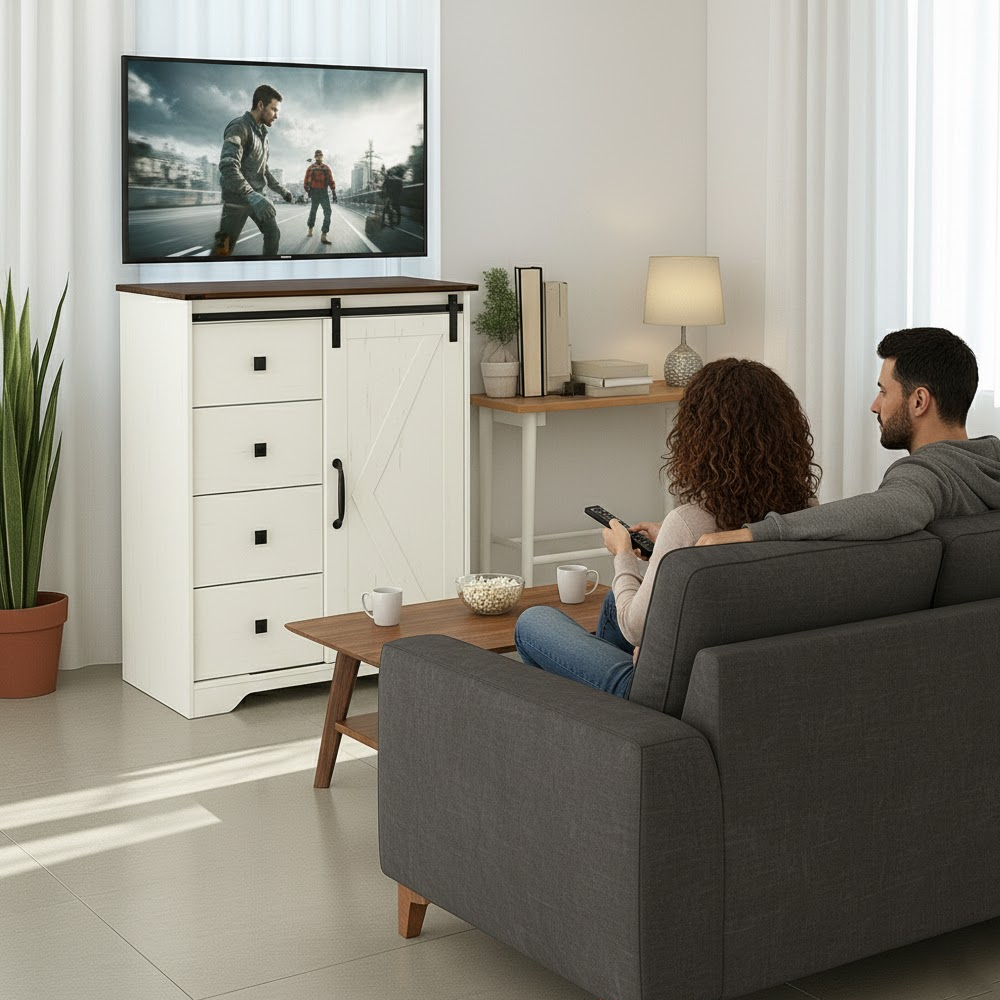 ارتقِ بديكور منزلك مع الخزانة الأنيقة ذات التصميم الريفي العصري، التي تجمع بين الجمال العملي والوظيفة الذكية.
