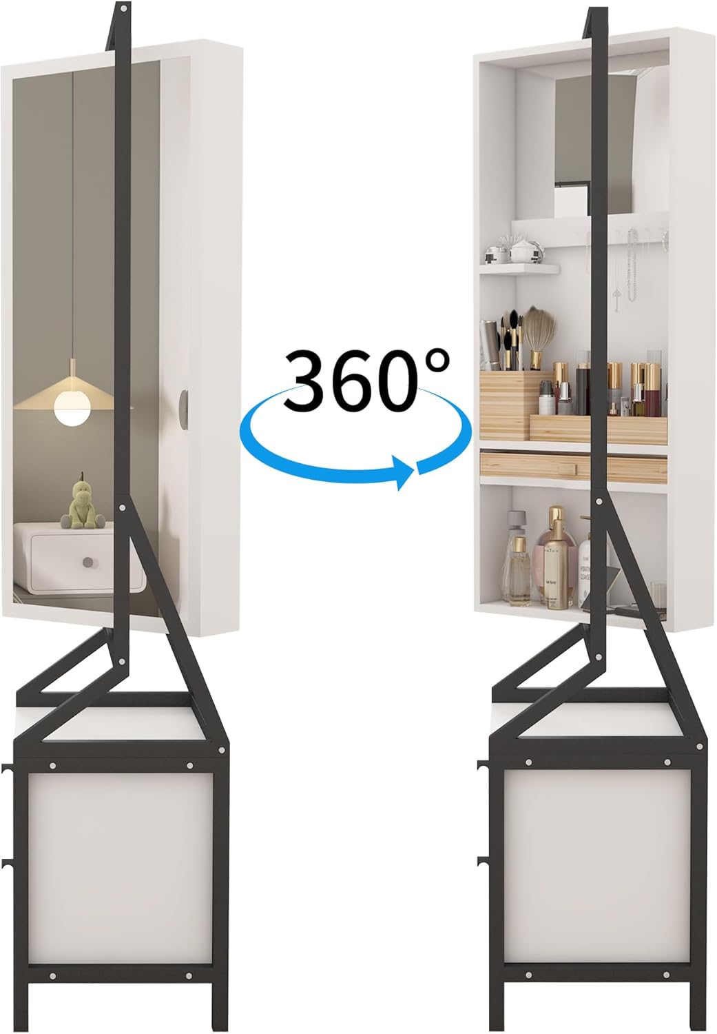 Jewelry and makeup cabinet with a 360-degree rotating mirror |