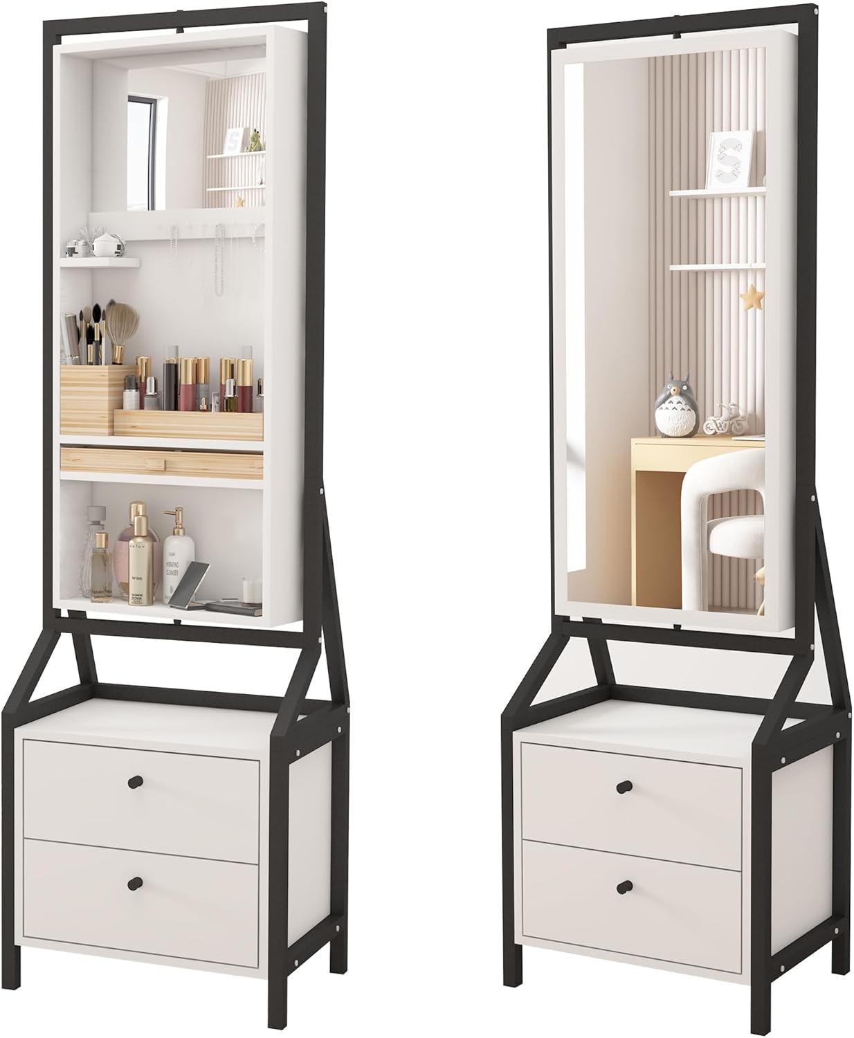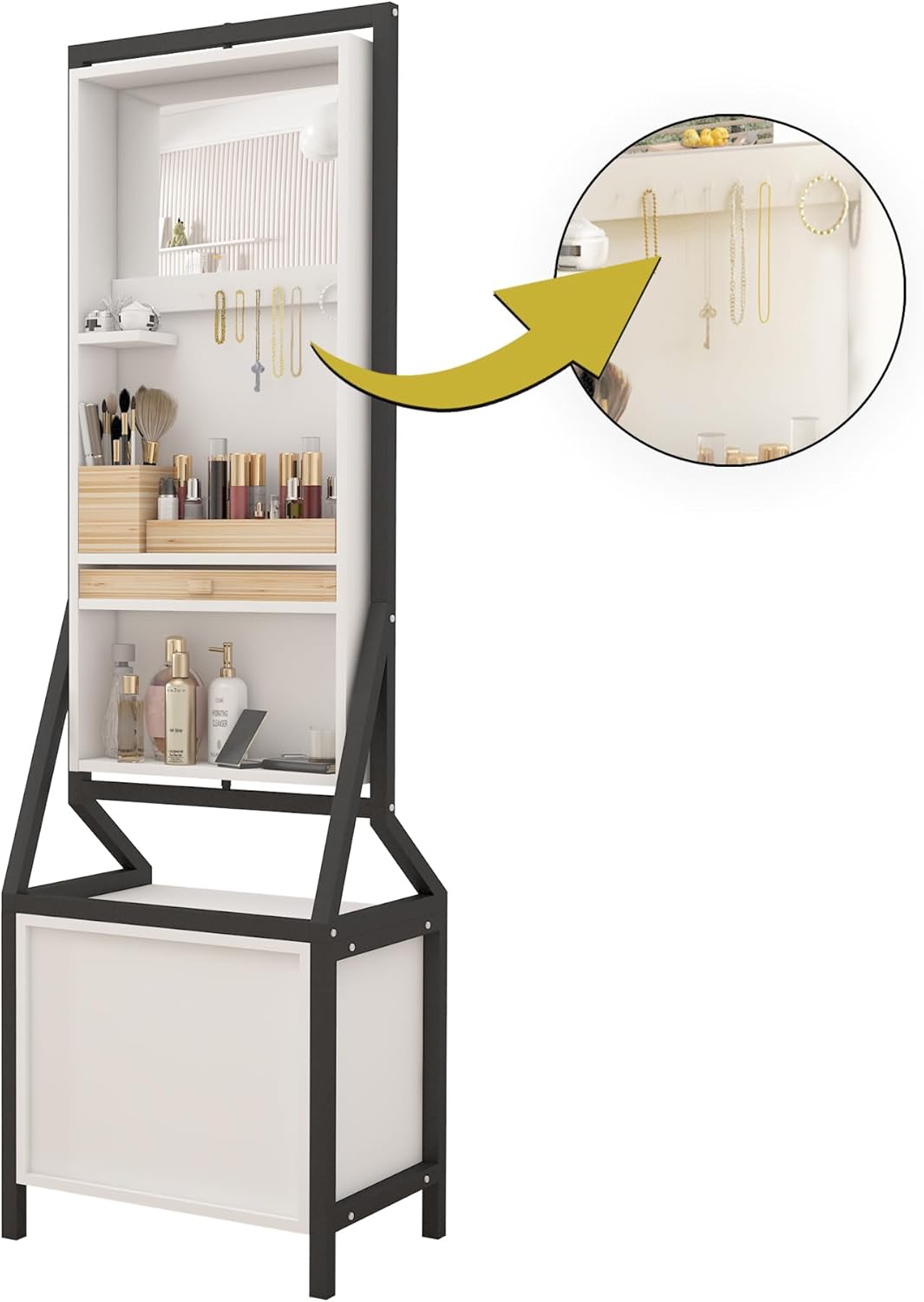 تصميم أنيق ومتين يدوم طويلًا. تُعد خزانة التخزين هذه المزودة بمرآة دوارة إضافة أنيقة وعملية لأي غرفة نوم أو ركن ملابس.
