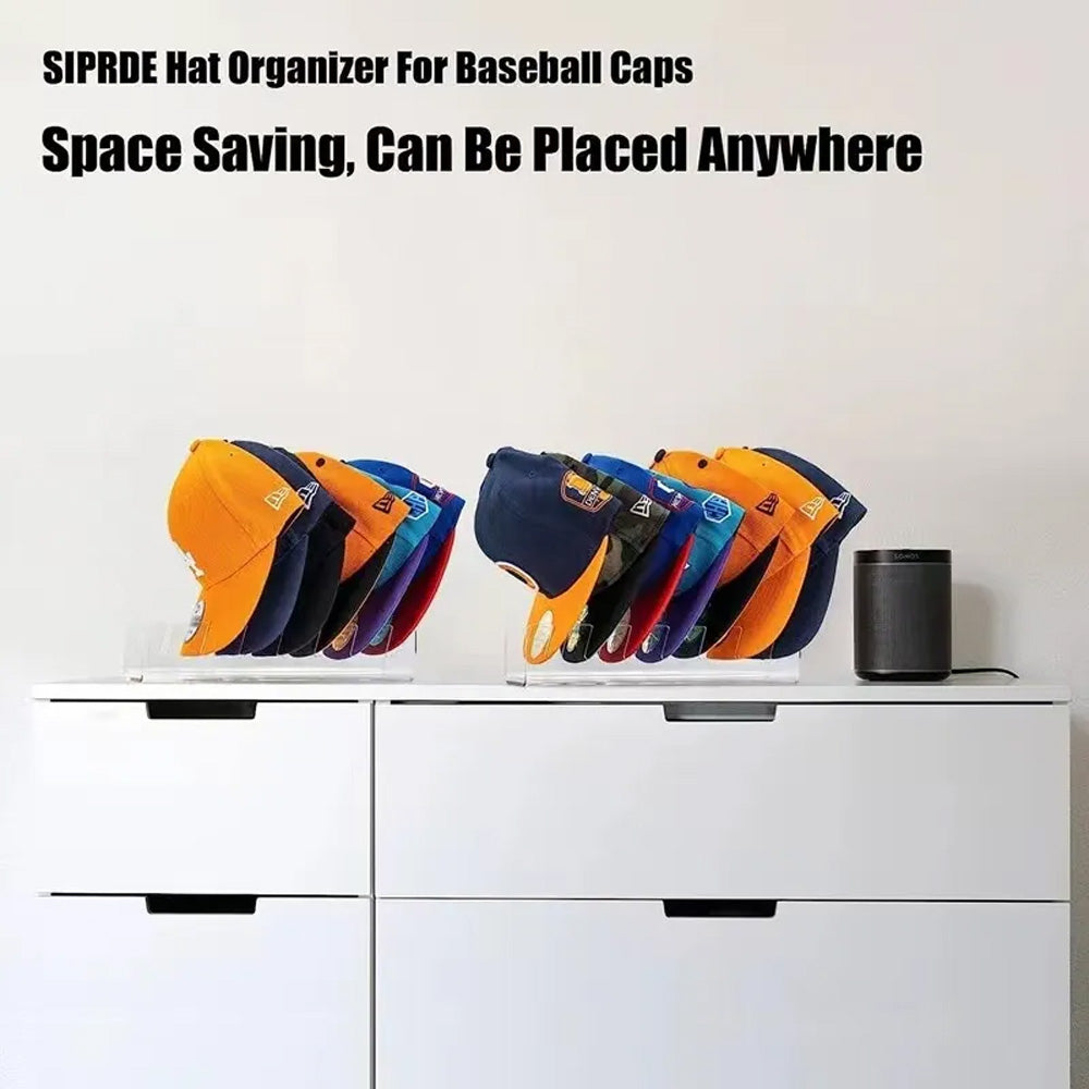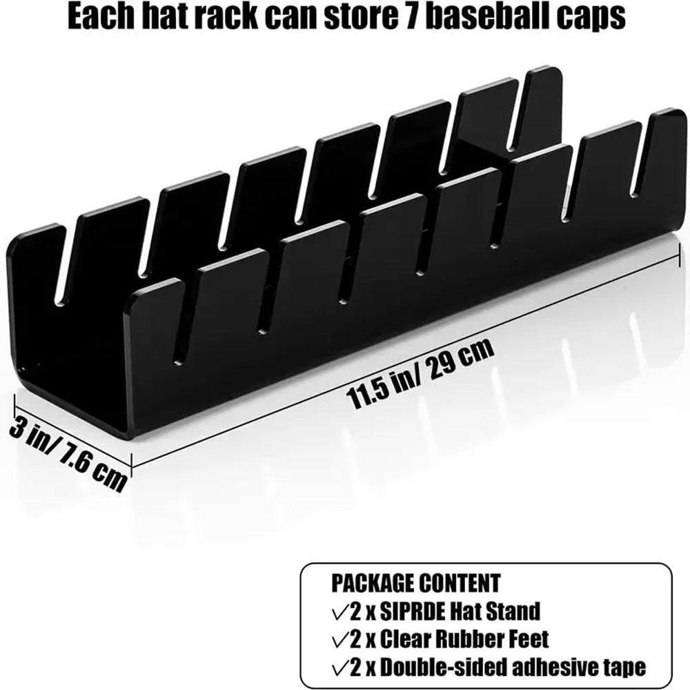 رفوف قبعات البيسبول لعرض وتنظيم قبعات البيسبول - عبوتان، رفوف قبعات اكريليك بدون تركيب لـ 14 قبعة بيسبول لغرفة النوم والخزانة وخزانة الملابس