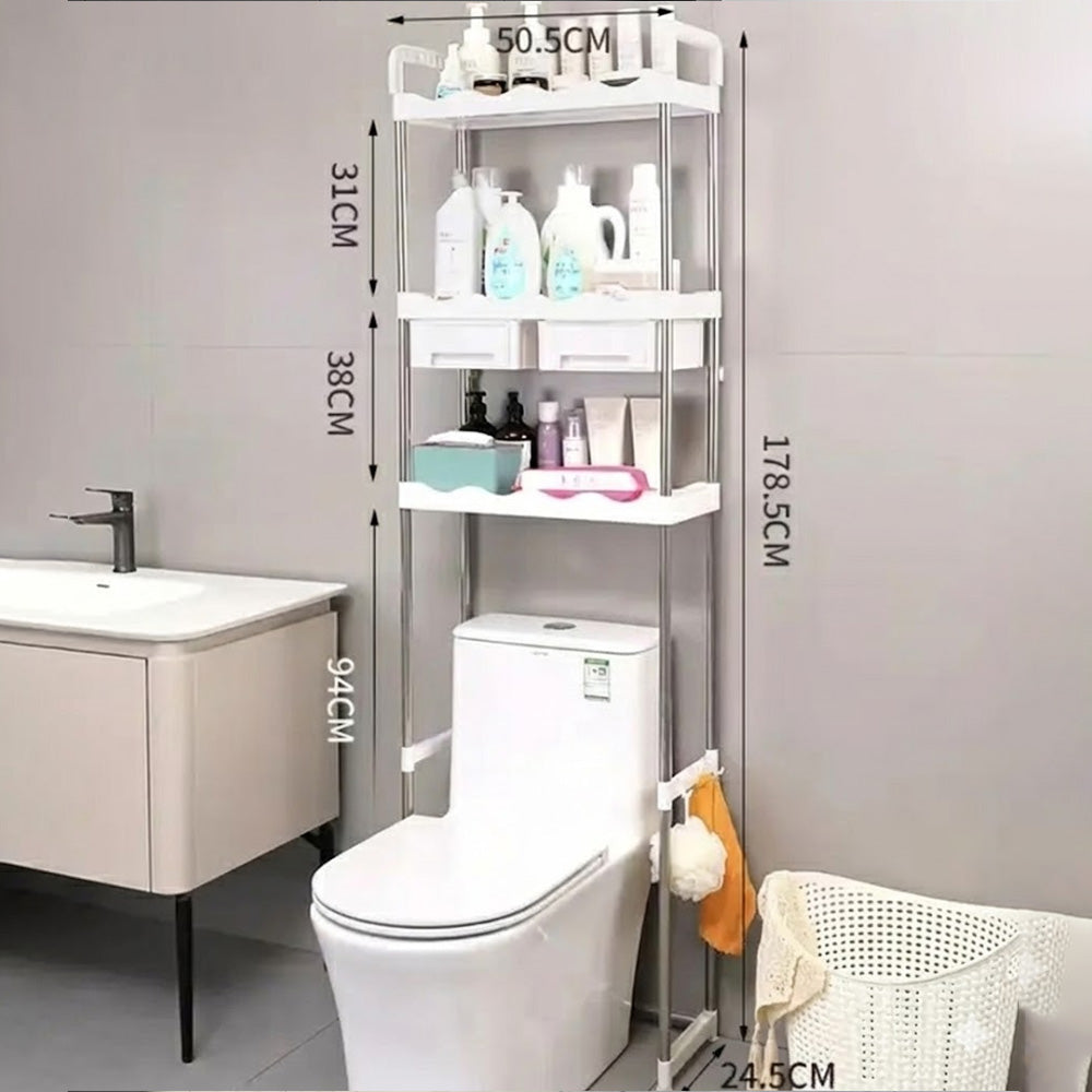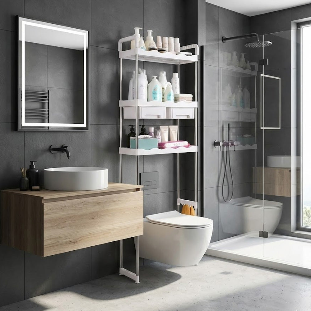 رف تخزين فوق المرحاض بثلاث طبقات