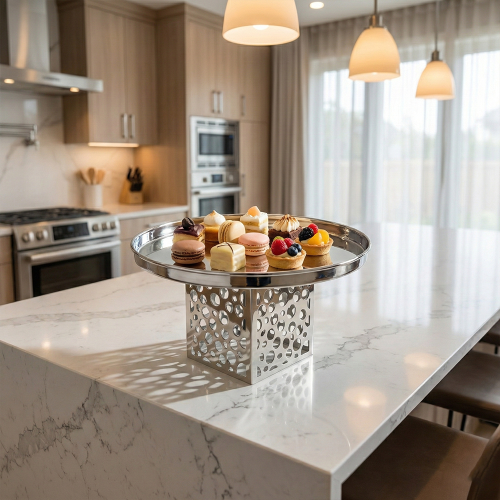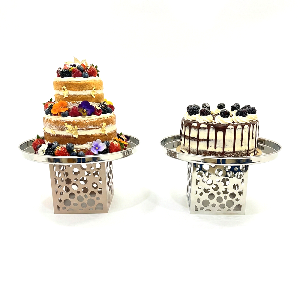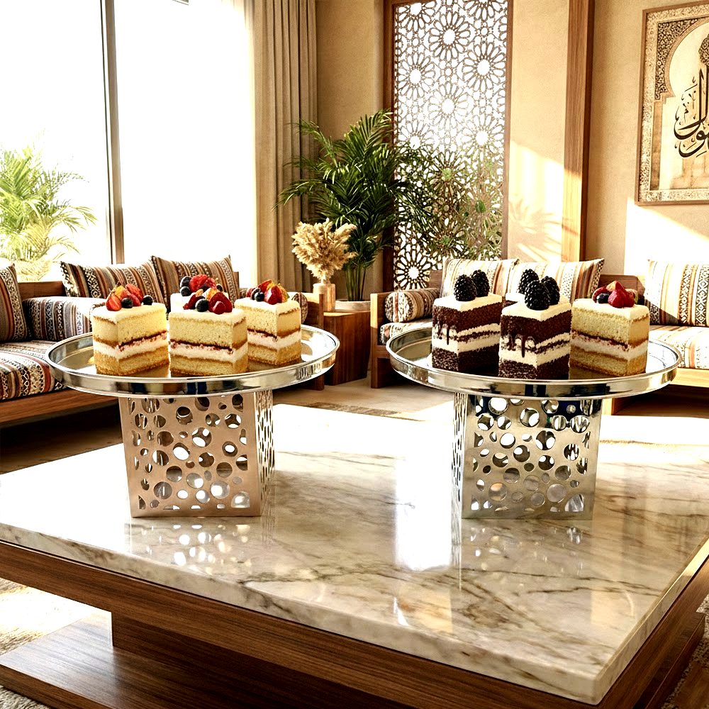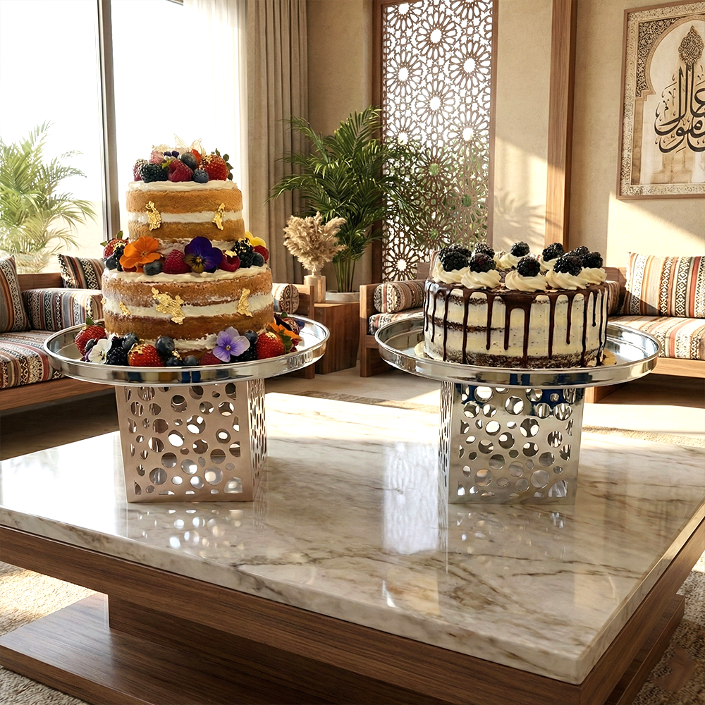 أضيفي لمسة فخامة وأناقة لطاولة الضيافة مع ستاند تقديم الكيك والحلويات المصنوع من الستانلس ستيل عالي الجودة، بتصميم عصري يجمع بين المتانة والجمال، مثالي لتقديم الكيك، الحلويات، المعجنات والمقبلات في المناسبات الخاصة واليومية.