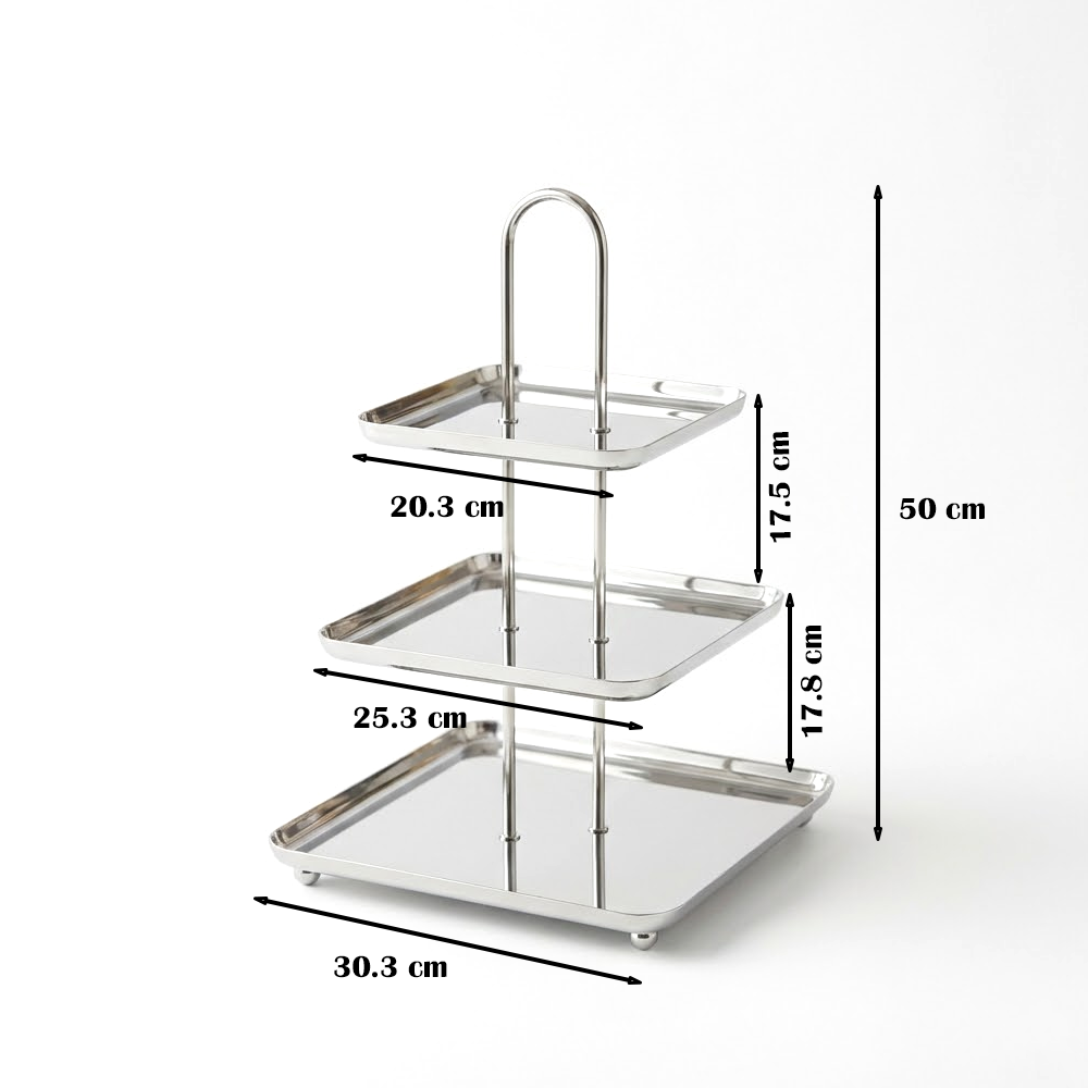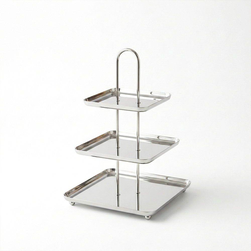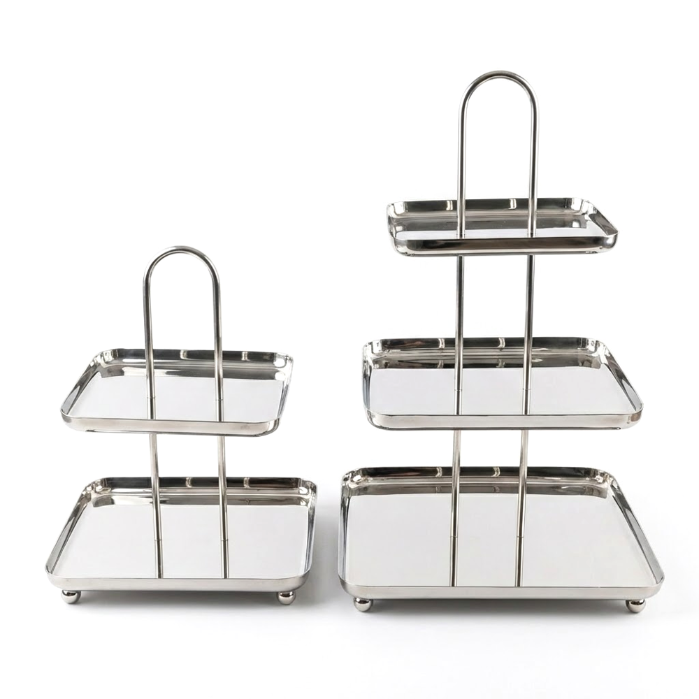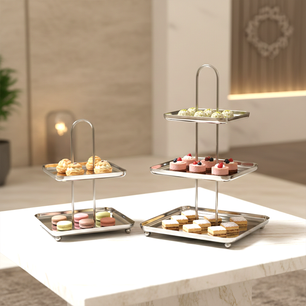 أضيفي لمسة فاخرة إلى ضيافتك مع ستاند التقديم المصنوع من الستانلس ستيل اللامع، المصمم بعناية لعرض الحلويات، المعجنات، التمور والفواكه بأسلوب أنيق وعملي.