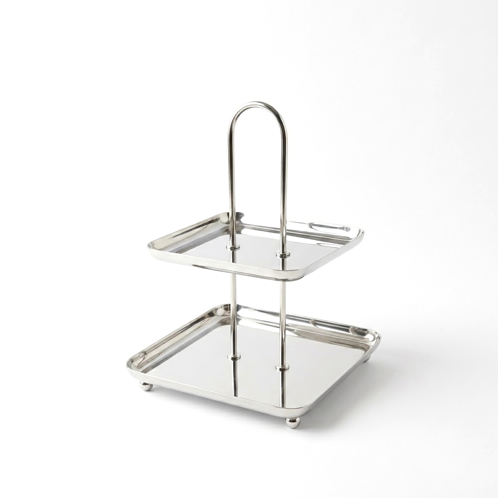 ستاند تقديم حلويات وفواكه ستانلس ستيل فاخر – دورين / ثلاث أدوار – تصميم أنيق بمقبض علوي
