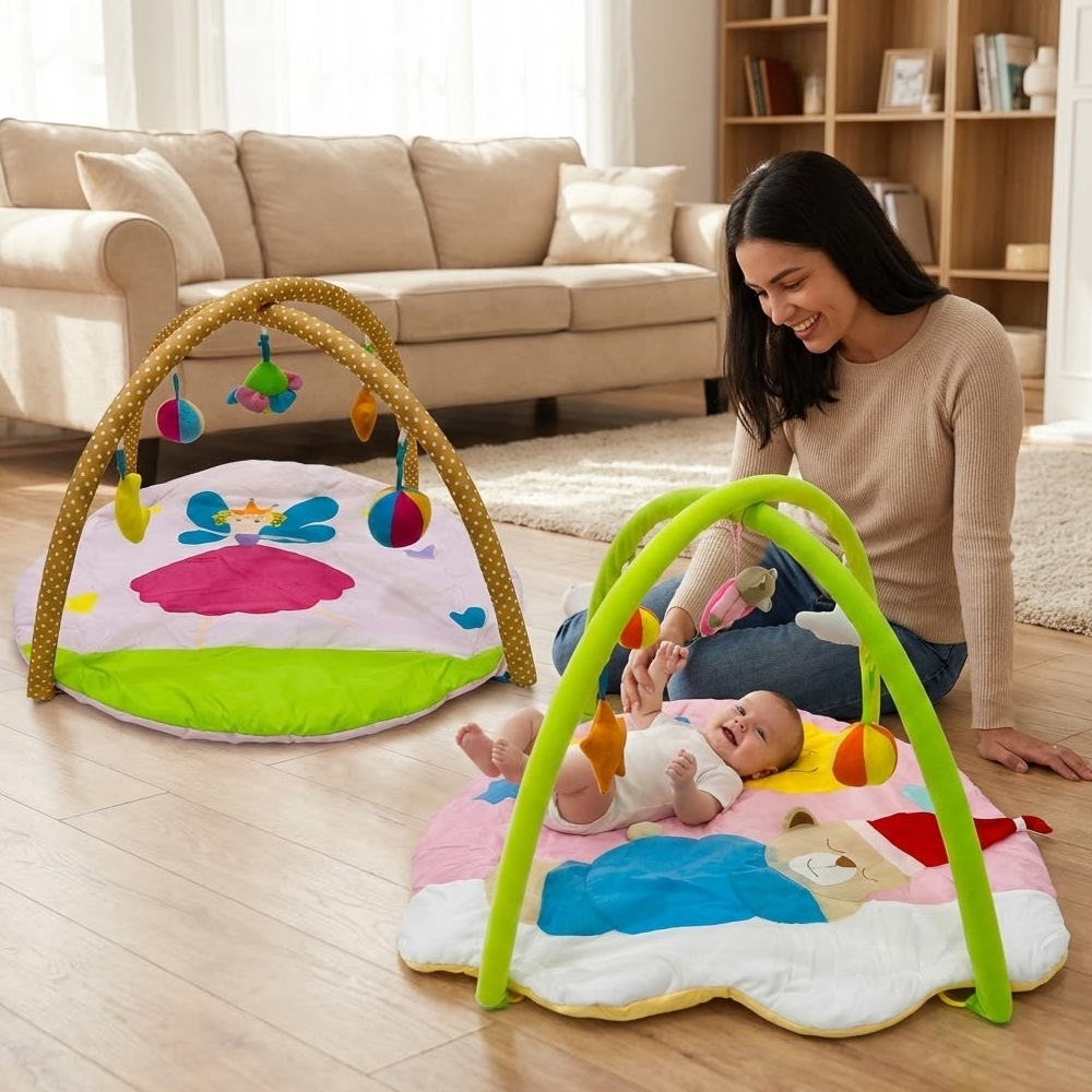 بساط ألعاب ناعم للرضّع مع أقواس وألعاب معلّقة – تصميم مريح ومحفّز من عمر 0+