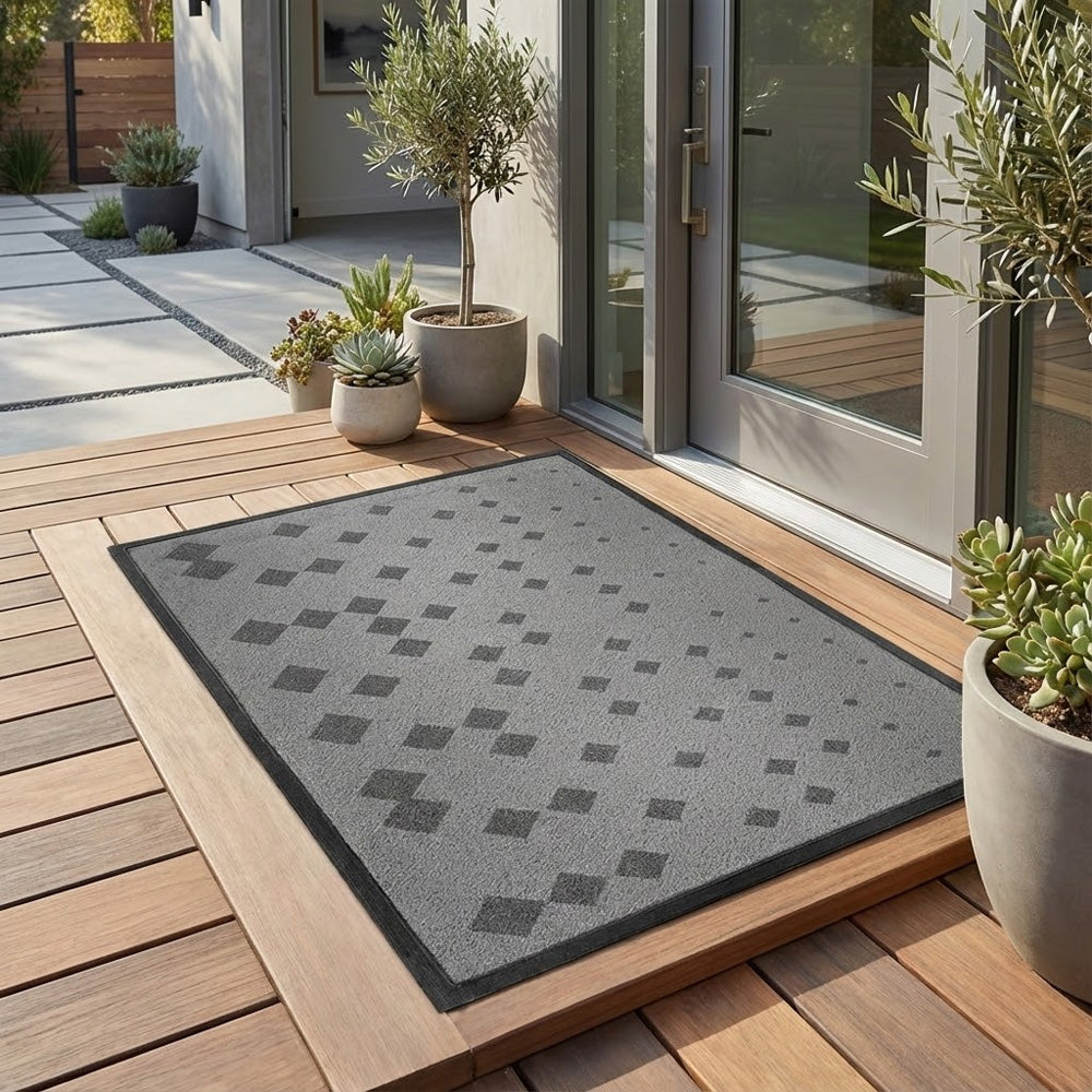 أضف لمسة من الأناقة والعملية إلى مدخل منزلك مع هذه السجادة الكلاسيكية بنقشة ماسية. مصممة بمقاس كبير 90 × 60 سم، توفر تغطية ممتازة للمداخل مع الحفاظ على نظافة المكان من الأوساخ والغبار.