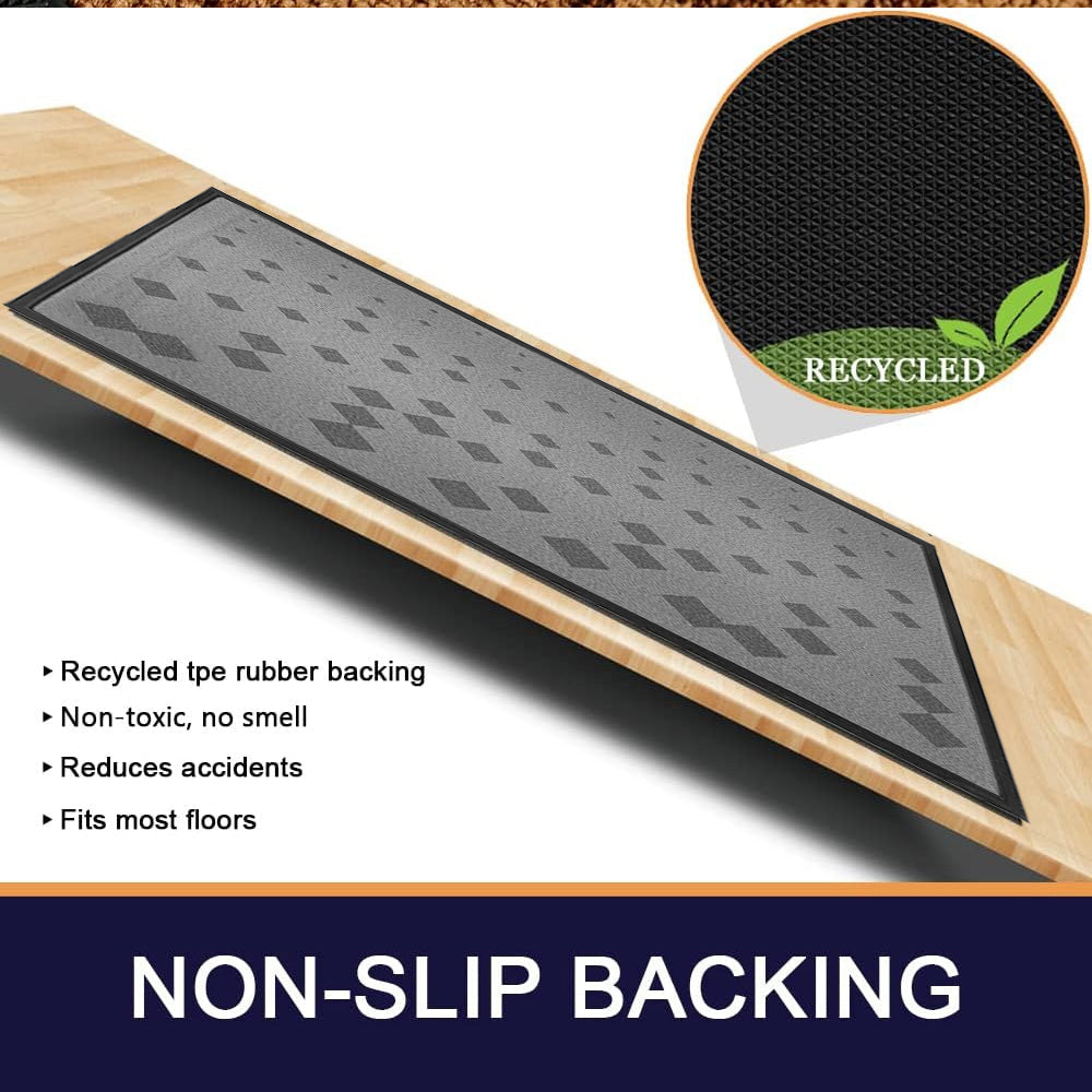 مصنوعة من سطح متين وحافة سوداء قوية، هذه السجادة مناسبة للاستخدام الداخلي والخارجي. ينسجم تصميمها الهندسي الأنيق بسهولة مع المساحات العصرية والكلاسيكية، مما يجعلها مثالية للمنازل والمكاتب والمتاجر والشقق.