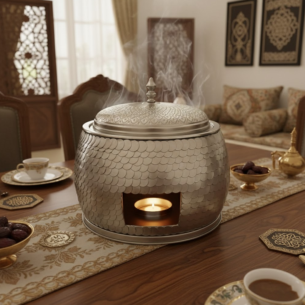 امنح مائدتك لمسة فاخرة تجمع بين الأصالة الشرقية والتصميم العصري مع حافظة التقديم الحرارية الدائرية.