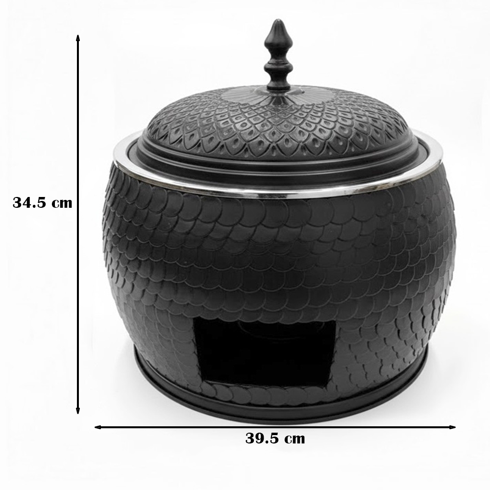 تم تصنيعها بعناية من معدن عالي الجودة بنقشة خارجية أنيقة مستوحاة من الفن التراثي، مع غطاء محكم يساعد على الحفاظ على حرارة الطعام ونكهته لفترة طويلة.