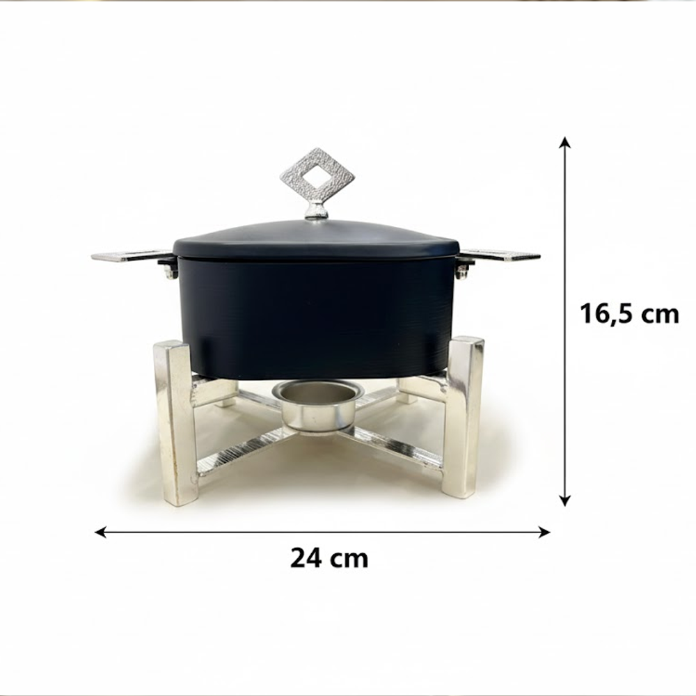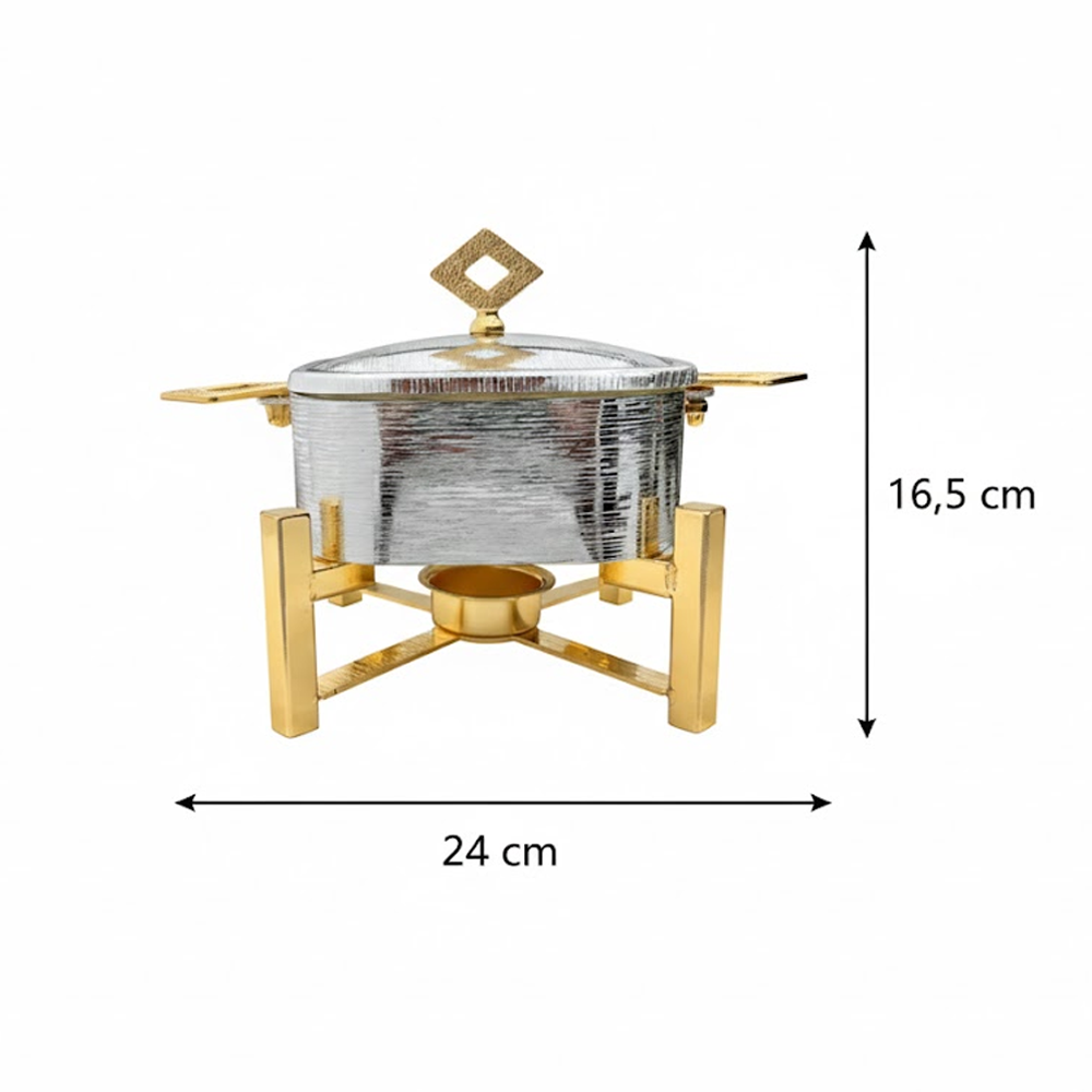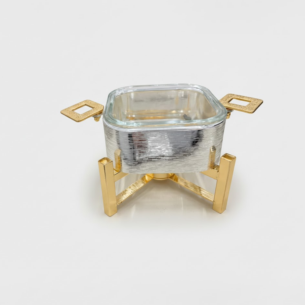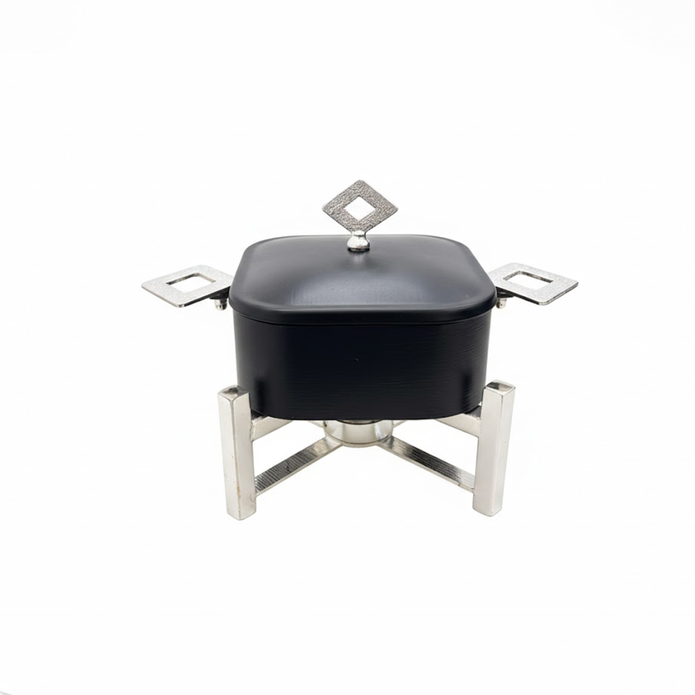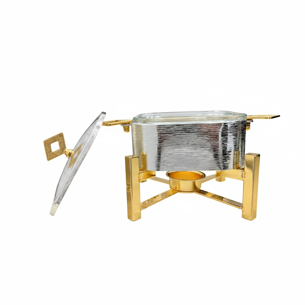 أضِف لمسة فخامة إلى مائدتك مع سخان تقديم الطعام المربع بتصميم عصري يجمع بين الأناقة والعملية. مثالي لتقديم الأرز، اليخنات، اللحوم، والأطباق الساخنة في العزائم والمناسبات الخاصة. يحافظ على حرارة الطعام لفترة أطول باستخدام نظام التسخين بالشمعة، مع هيكل متين وتشطيب فاخر يناسب جميع أنماط الديكور.