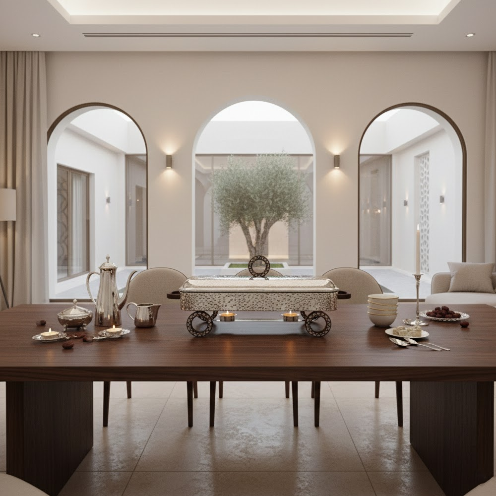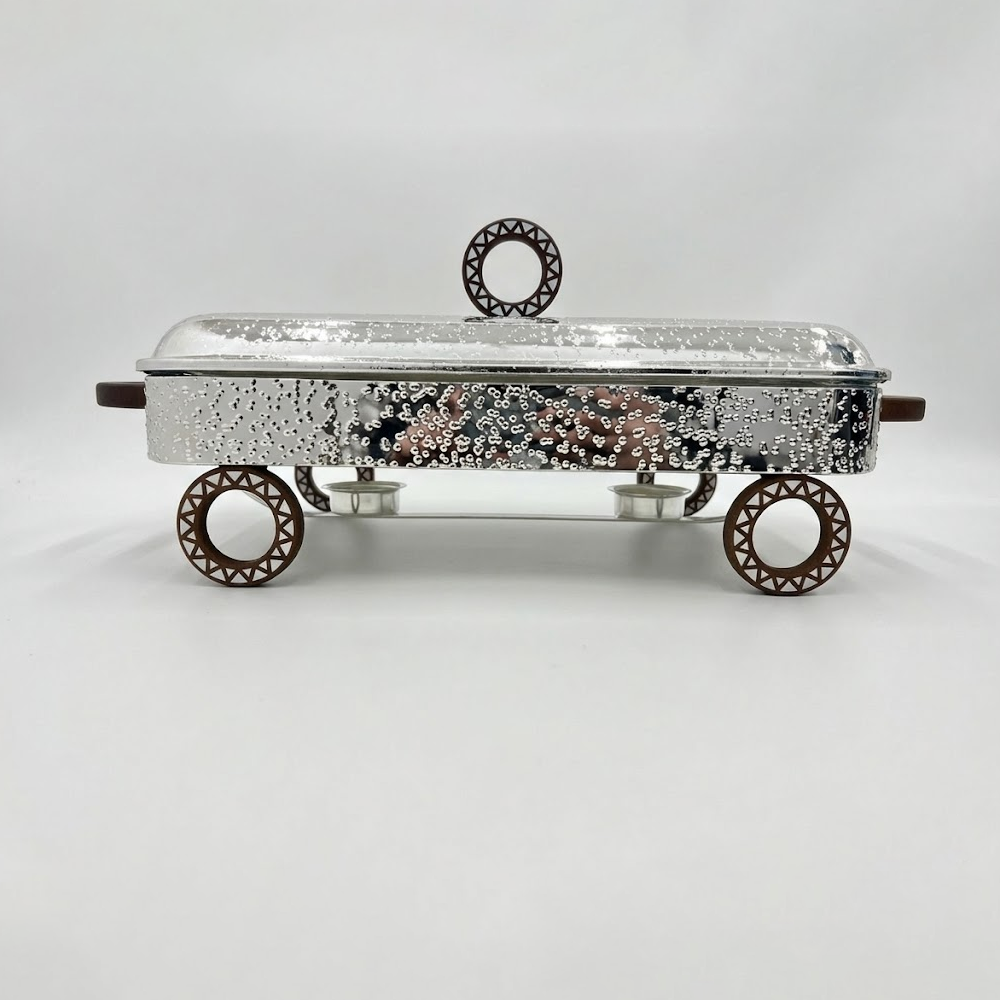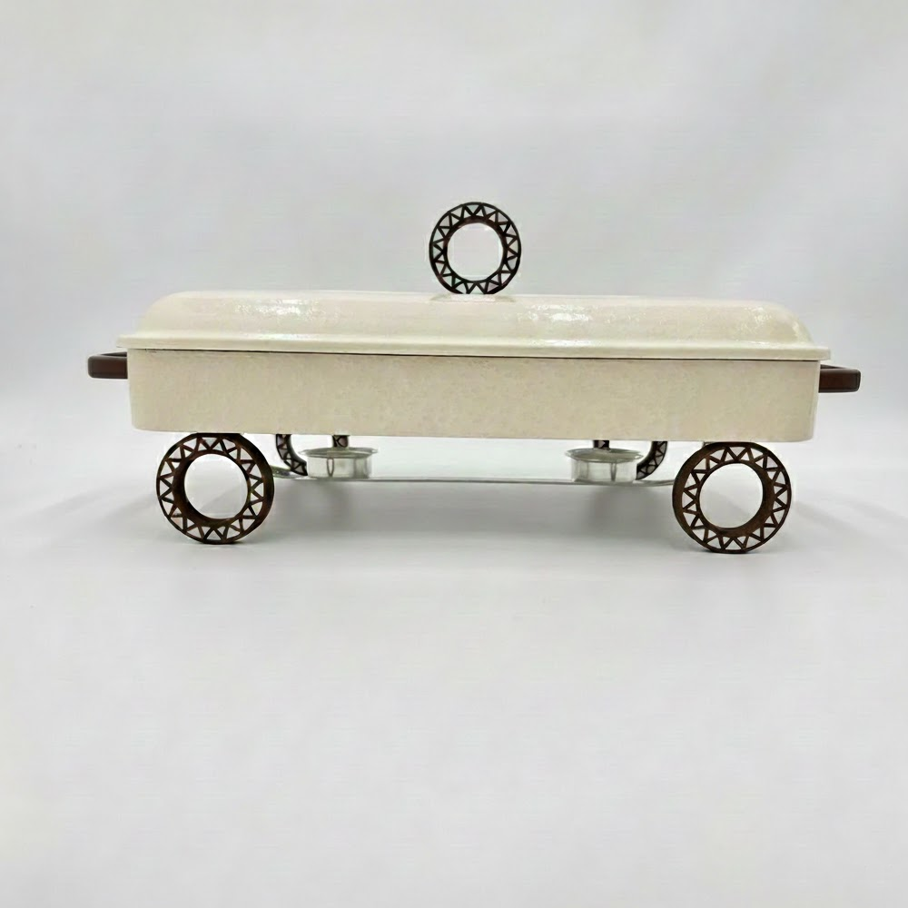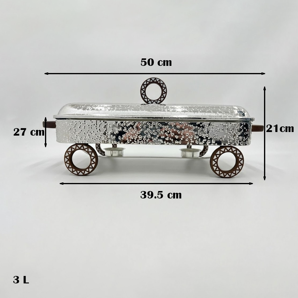 أضف لمسة فخامة وتنظيم مثالي لسفرة الضيافة مع سخان تقديم الطعام الفاخر المصمم بعناية ليجمع بين الأناقة والعملية. يتميز هذا السخان بتصميم عصري مستوحى من الطابع الكلاسيكي، مع قاعدة ثابتة مزودة بعجلات ديكورية تضيف مظهرًا راقيًا وتسهّل الحركة على الطاولة.