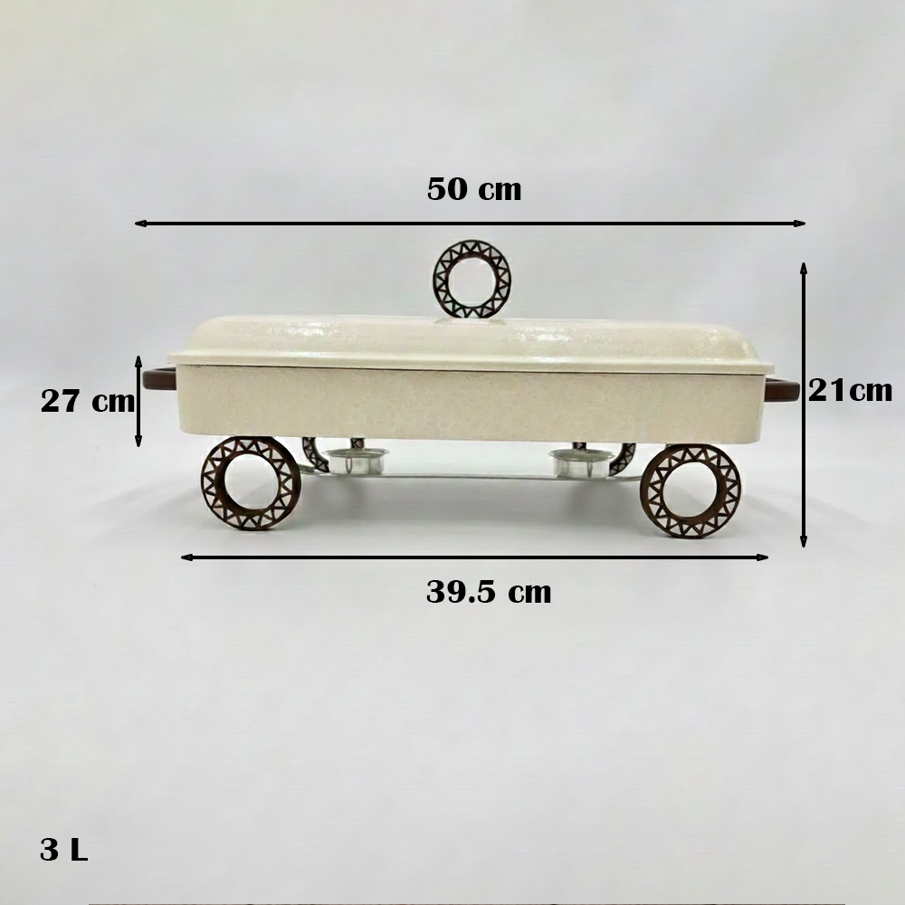 سخان تقديم طعام فاخر بغطاء زجاجي – تصميم أنيق بعجلات – لون بيج وفضي – سعة 3 لتر