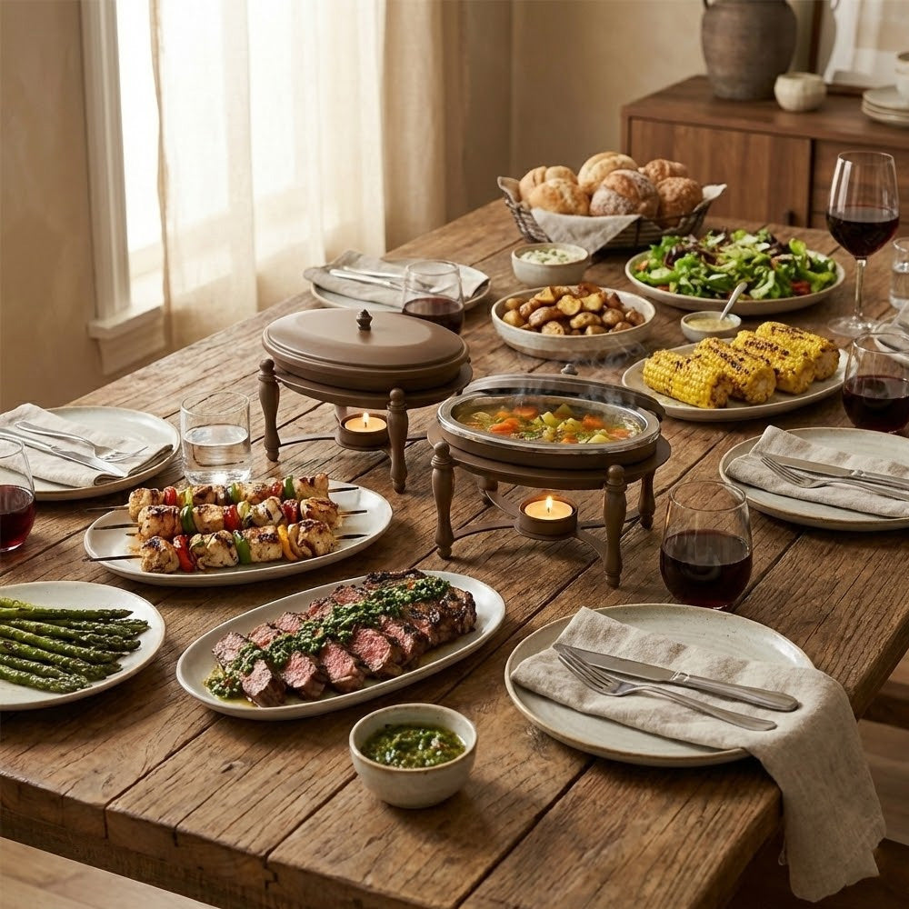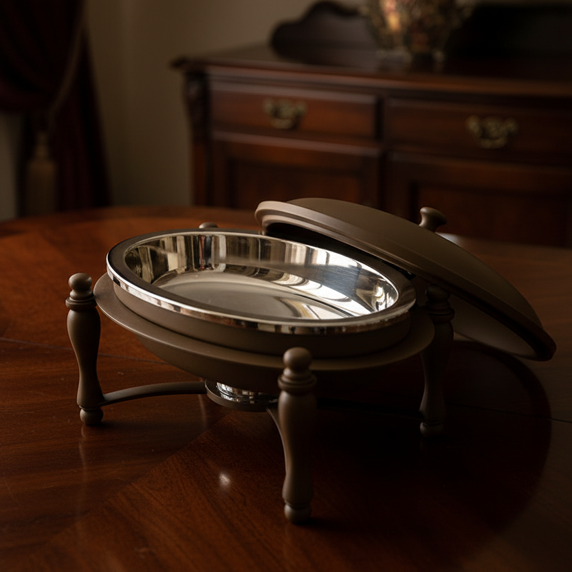 نظام تسخين عملي: مزودة بقاعدة سفلية مخصصة لوضع شمعة التسخين أو علبة جل الوقود، لضمان استمرار الحرارة طوال فترة التقديم.