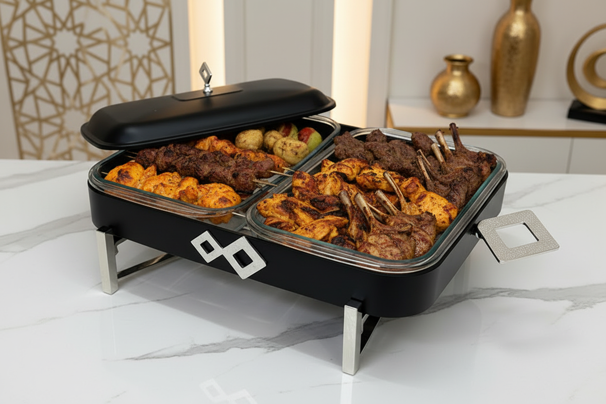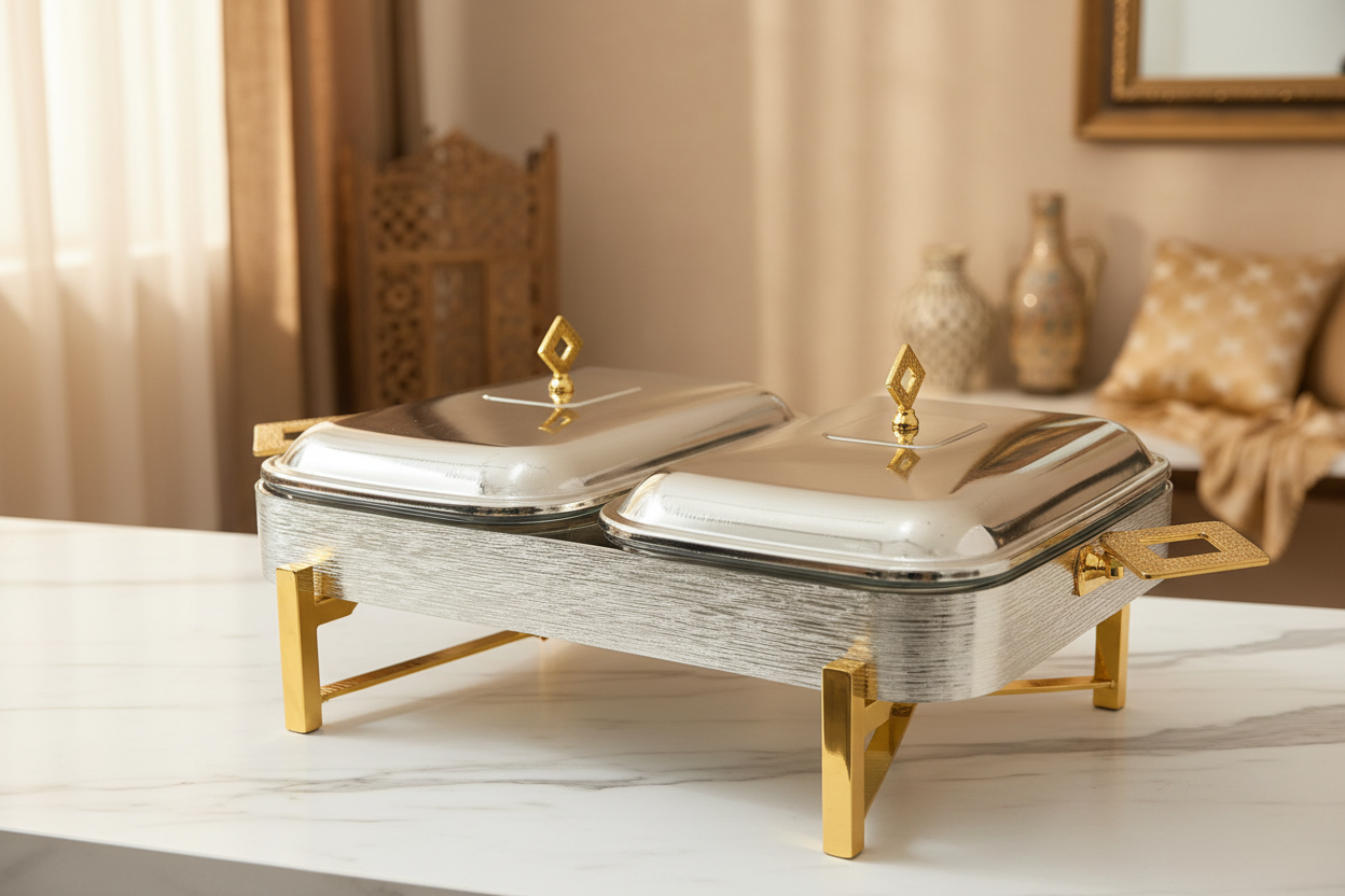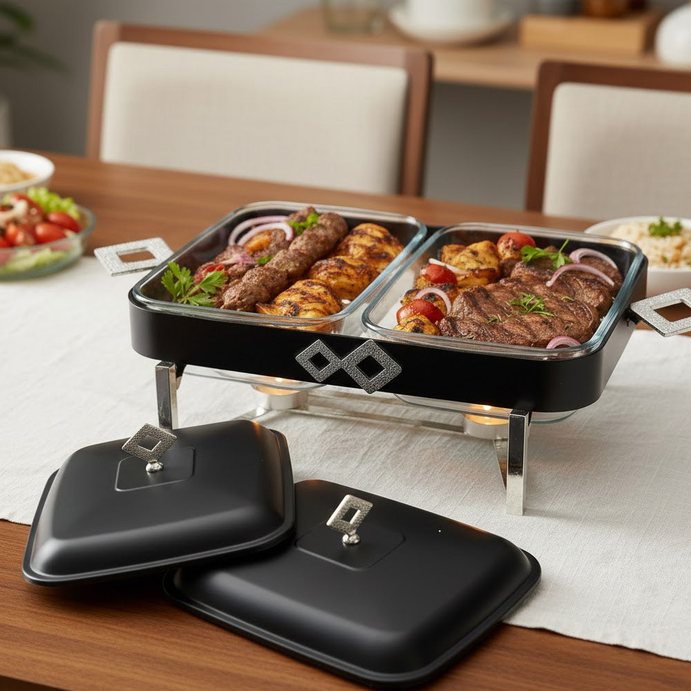 أضيفي لمسة من الأناقة العصرية إلى مائدتك مع سخان الطعام المزدوج المصمم بلمسات هندسية فاخرة. سواء كنتِ تستعدين لعزومة عائلية أو مناسبة خاصة، هذا السخان يضمن لكِ تقديم الطعام بدرجة حرارة مثالية وبشكل يخطف الأنظار.