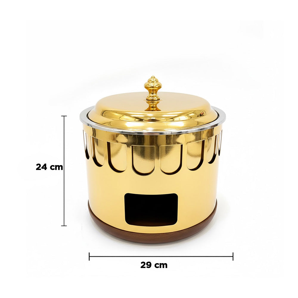هذا السخان الغذائي بسعة 3 لترات حل أنيق وعملي للحفاظ على الطعام دافئًا أثناء التقديم. بتصميمه الدائري وغطائه المحكم، يُعد مثاليًا للبوفيهات، وخدمات تقديم الطعام، والمطاعم، والفنادق، والتجمعات المنزلية.