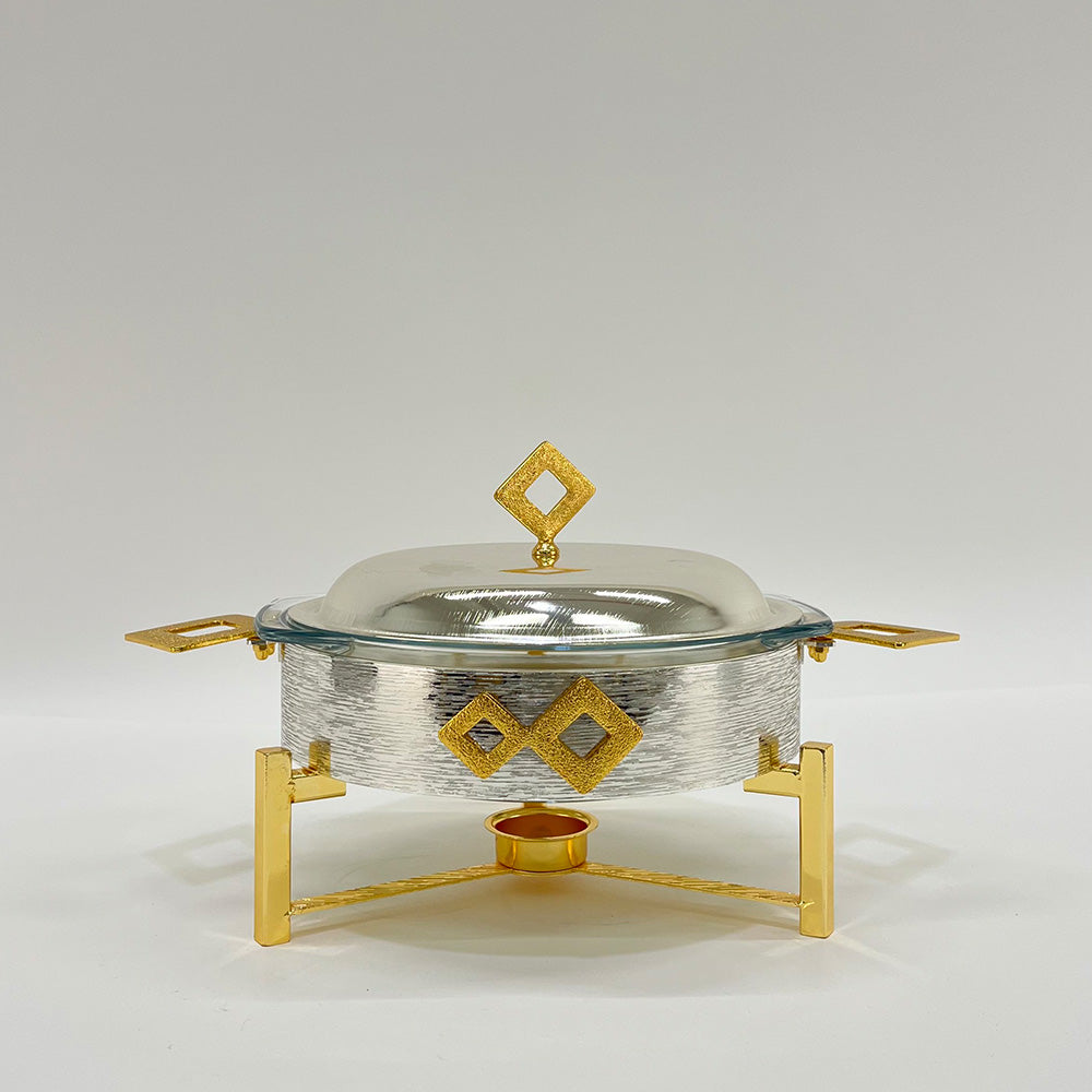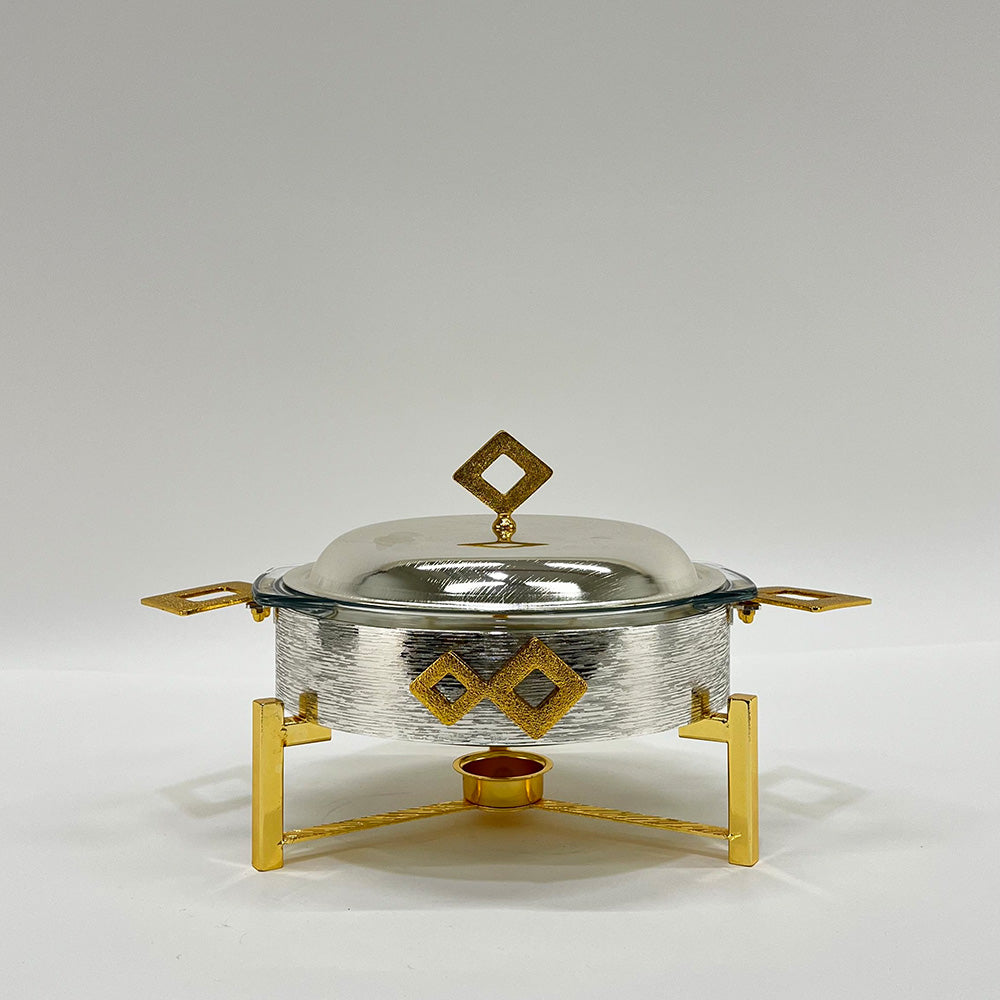 تسخين هادئ: يعتمد على شموع "التيه لايت" (Tea Lights) الموجودة في القاعدة للحفاظ على حرارة الطعام بلطف دون طبخه بشكل زائد.