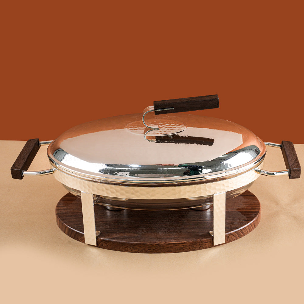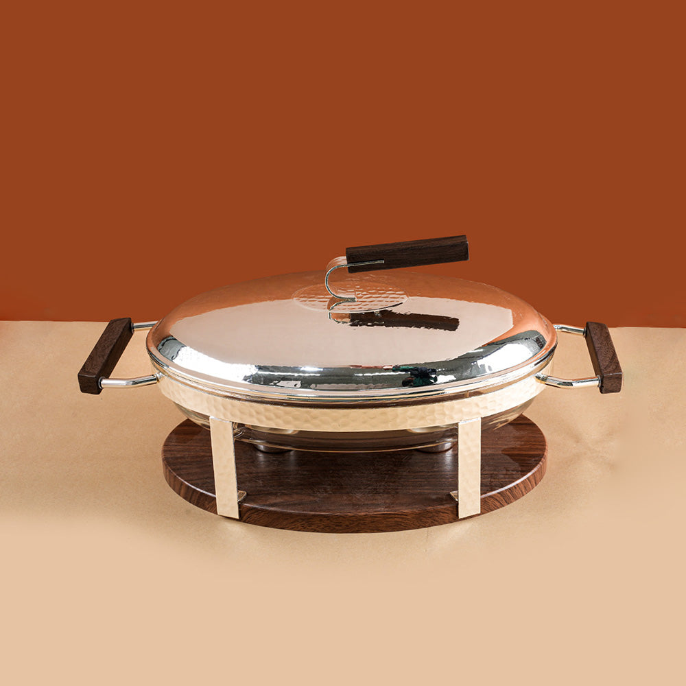 هو سخان طعام بتصميم أنيق يجمع بين المعدن والخشب