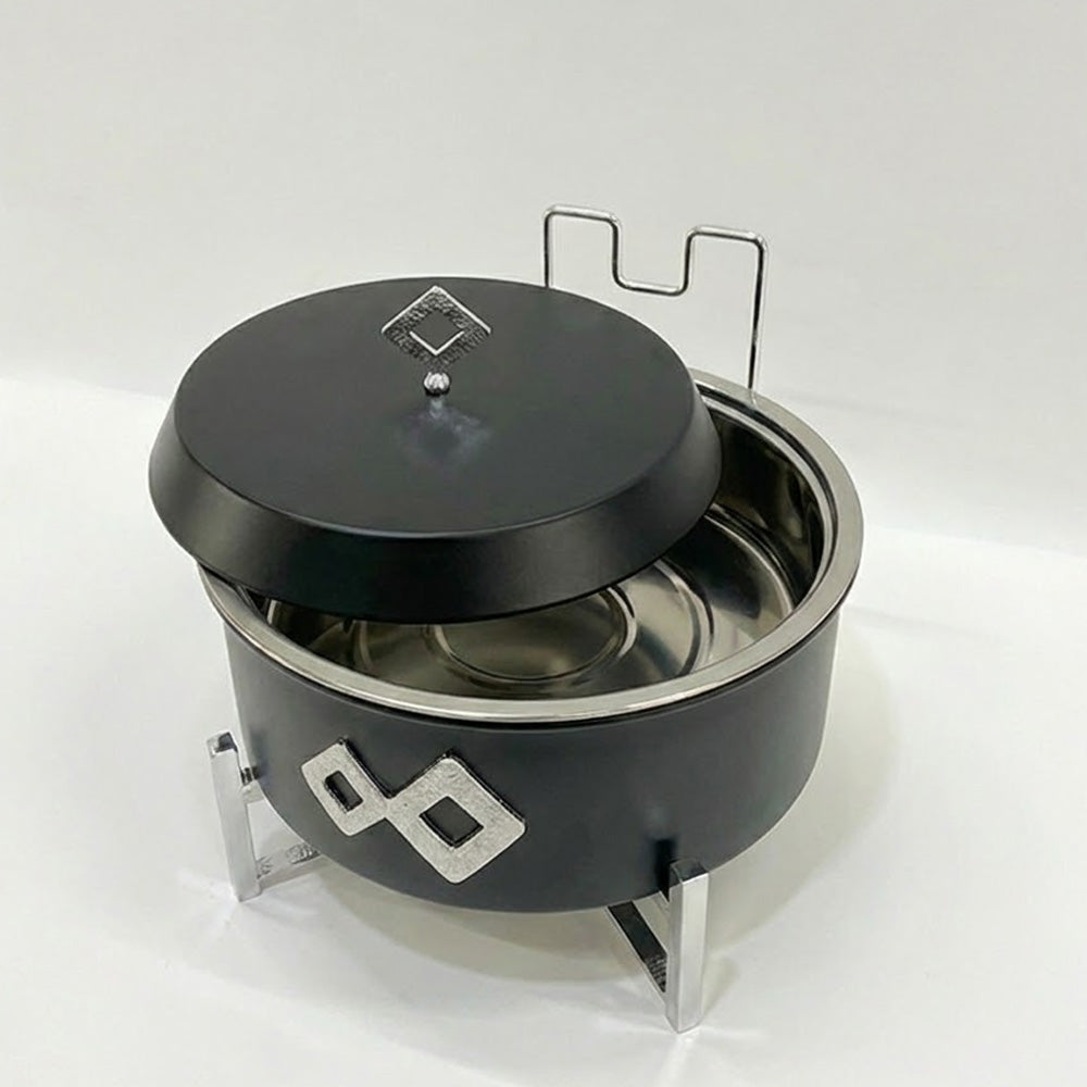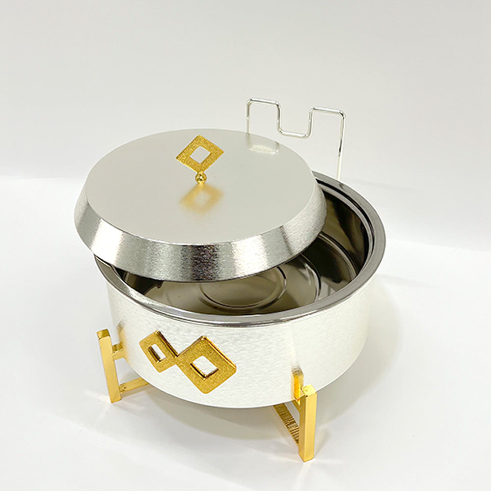 توزيع مثالي للحرارة: مزود بحامل ثلاثي متين يتضمن مكاناً مخصصاً لشمعة أو وقود التسخين لضمان بقاء الطعام ساخناً لساعات.