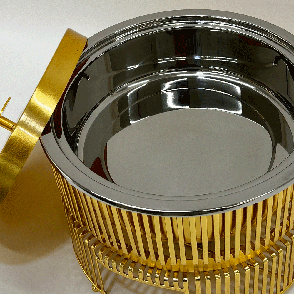 الغطاء المعدني المصقول مزوّد بمقبض أنيق يسهّل الفتح والإغلاق، مع وعاء داخلي من الستانلس ستيل عالي الجودة يحافظ على حرارة الطعام ويضمن سهولة التنظيف.