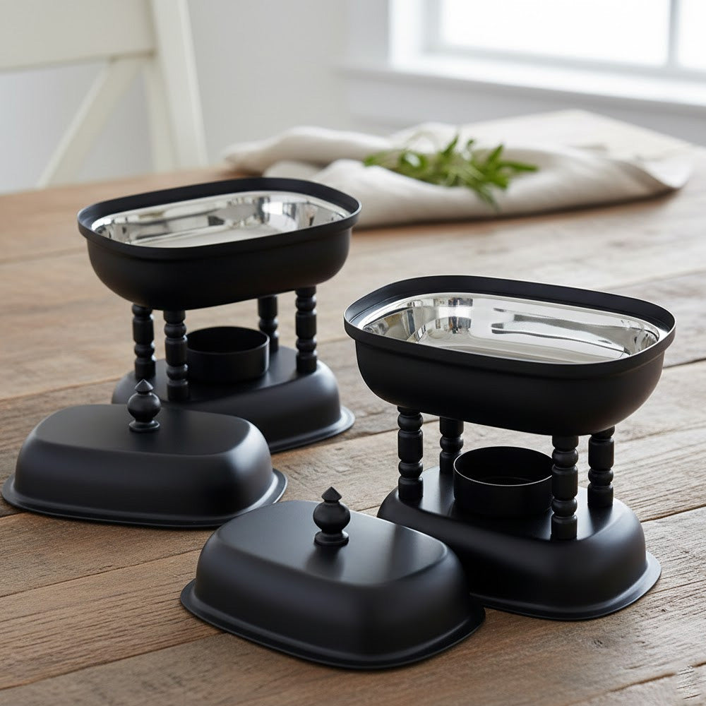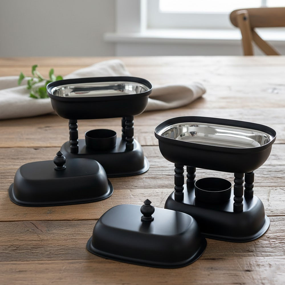 سخان تقديم طعام فاخر- تصميم ملكي باللون الأسود (شكل مربع)