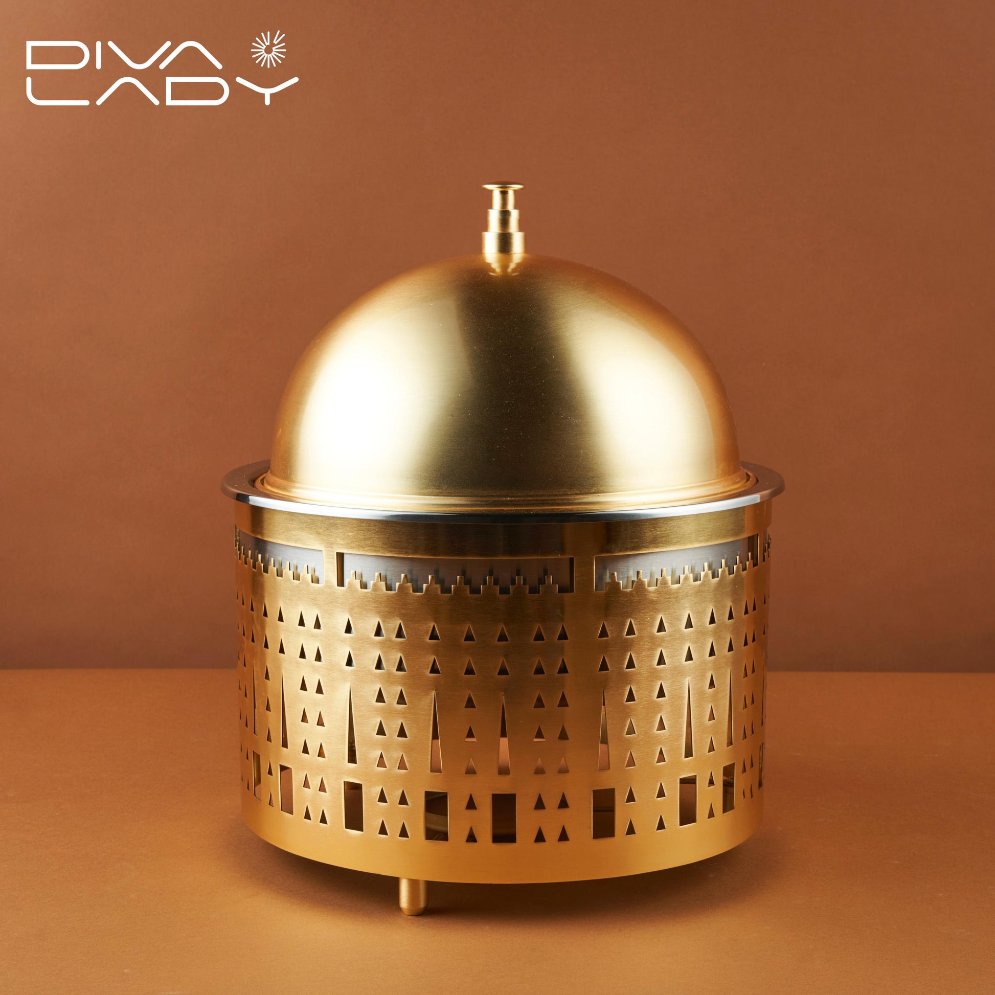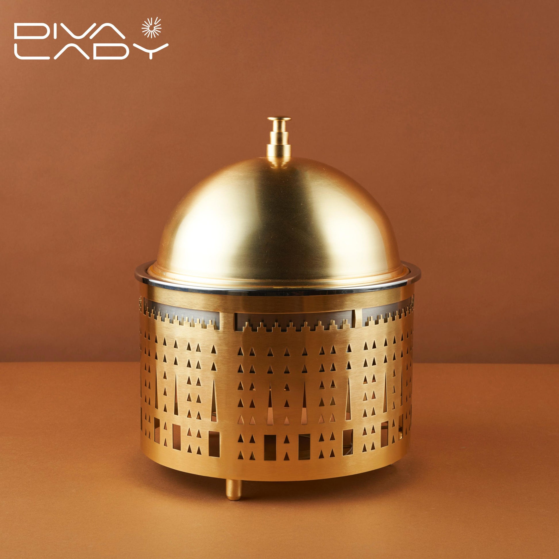 عباره عن وعاء لتقديم الطعام ويبدو انه مصنوع بتصميم معدنى انيق ومزخرف