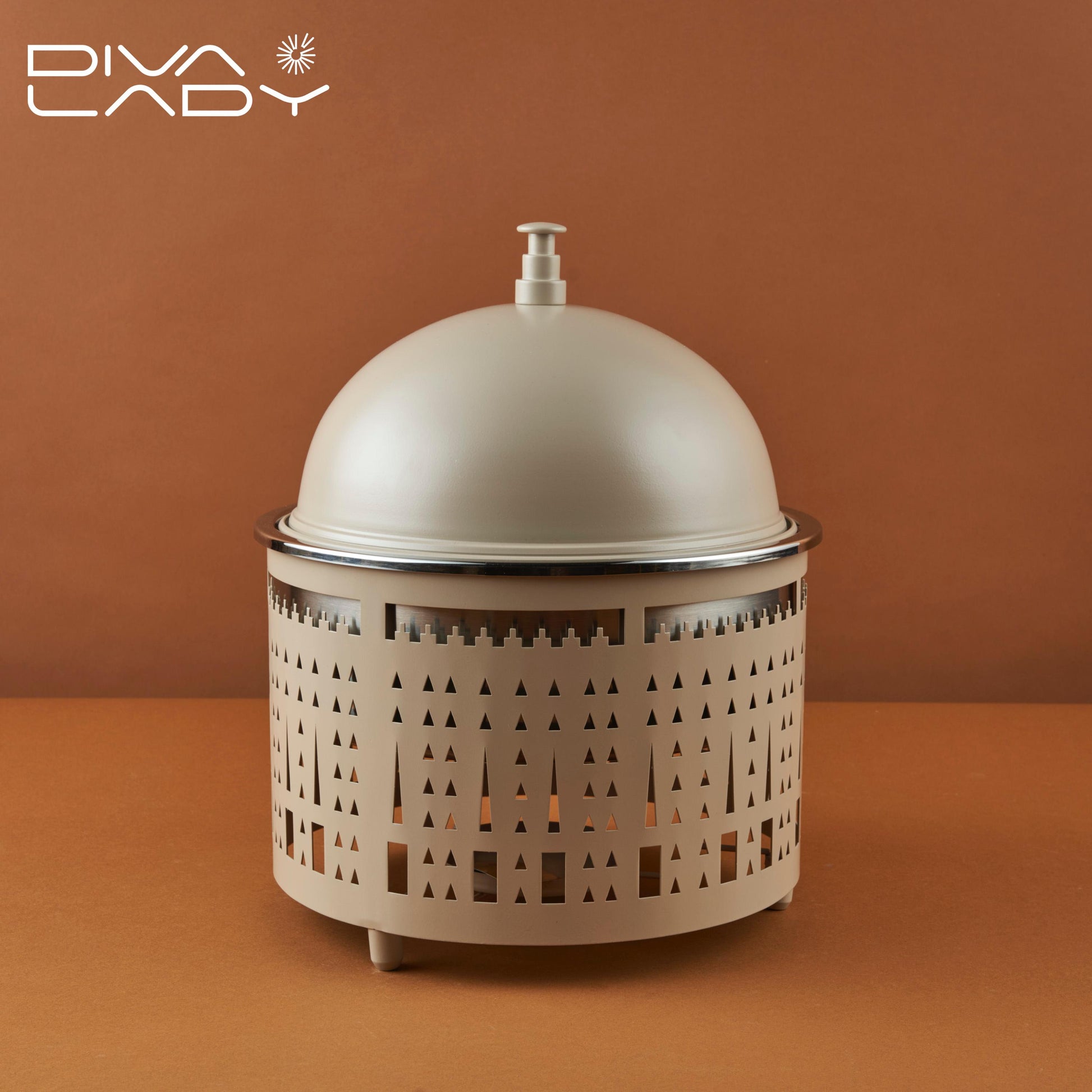عباره عن وعاء لتقديم الطعام ويبدو انه مصنوع بتصميم معدنى انيق ومزخرف