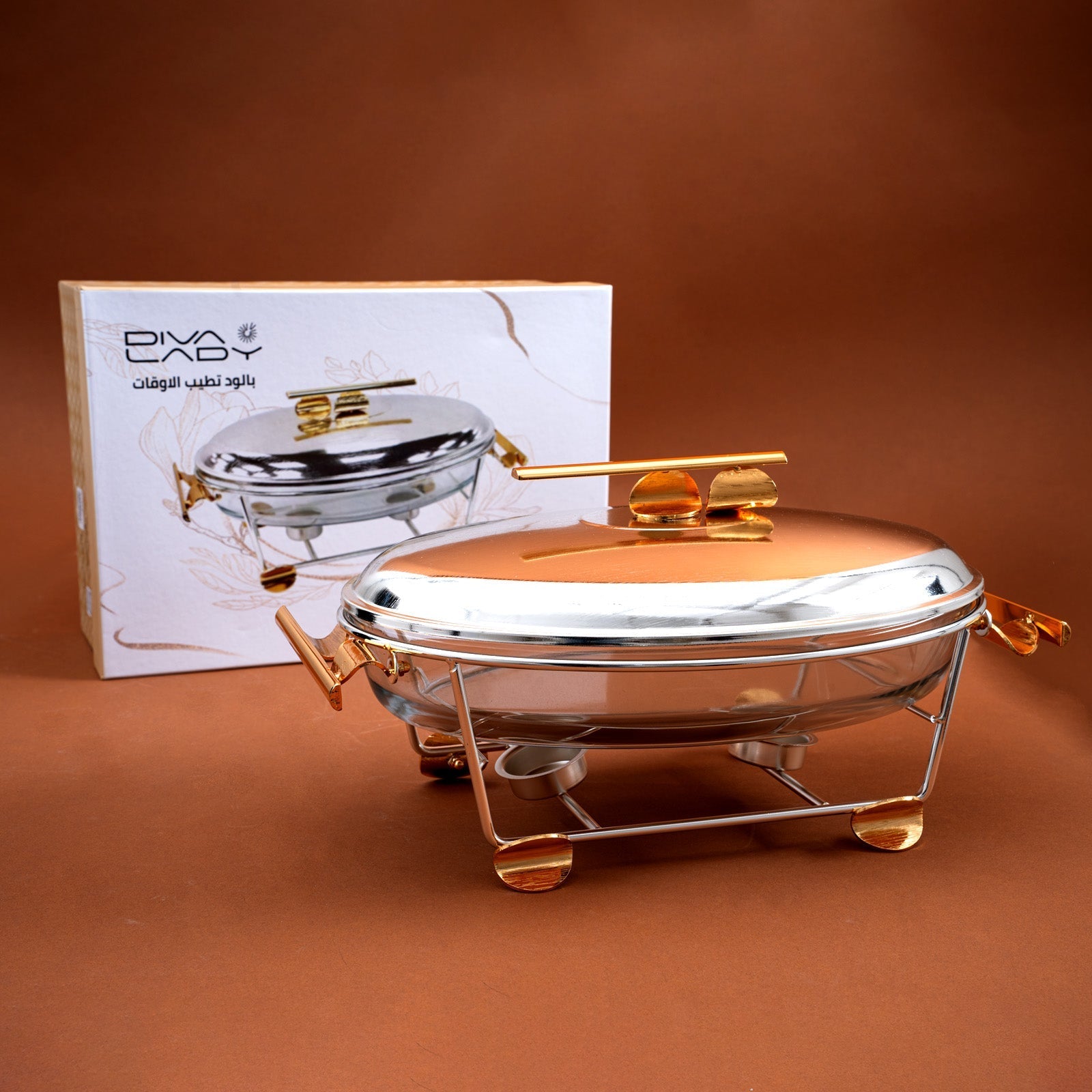 يحافظ على الطعام ساخنا: بفضل تصميمه الذكي، يحافظ هذا الطبق على الطعام ساخنا لساعات طويلة، مما يجعله مثاليا للبوفيهات المفتوحة