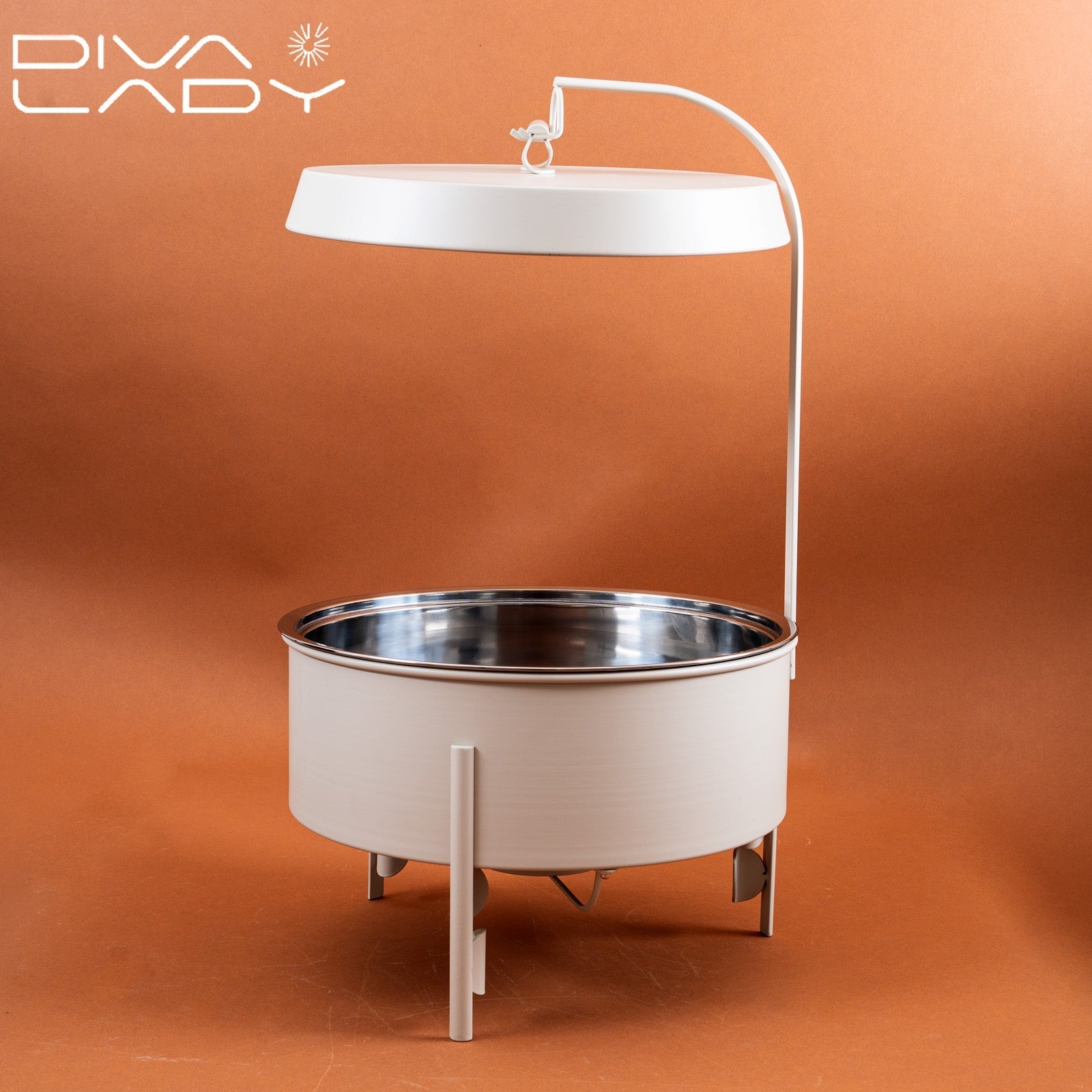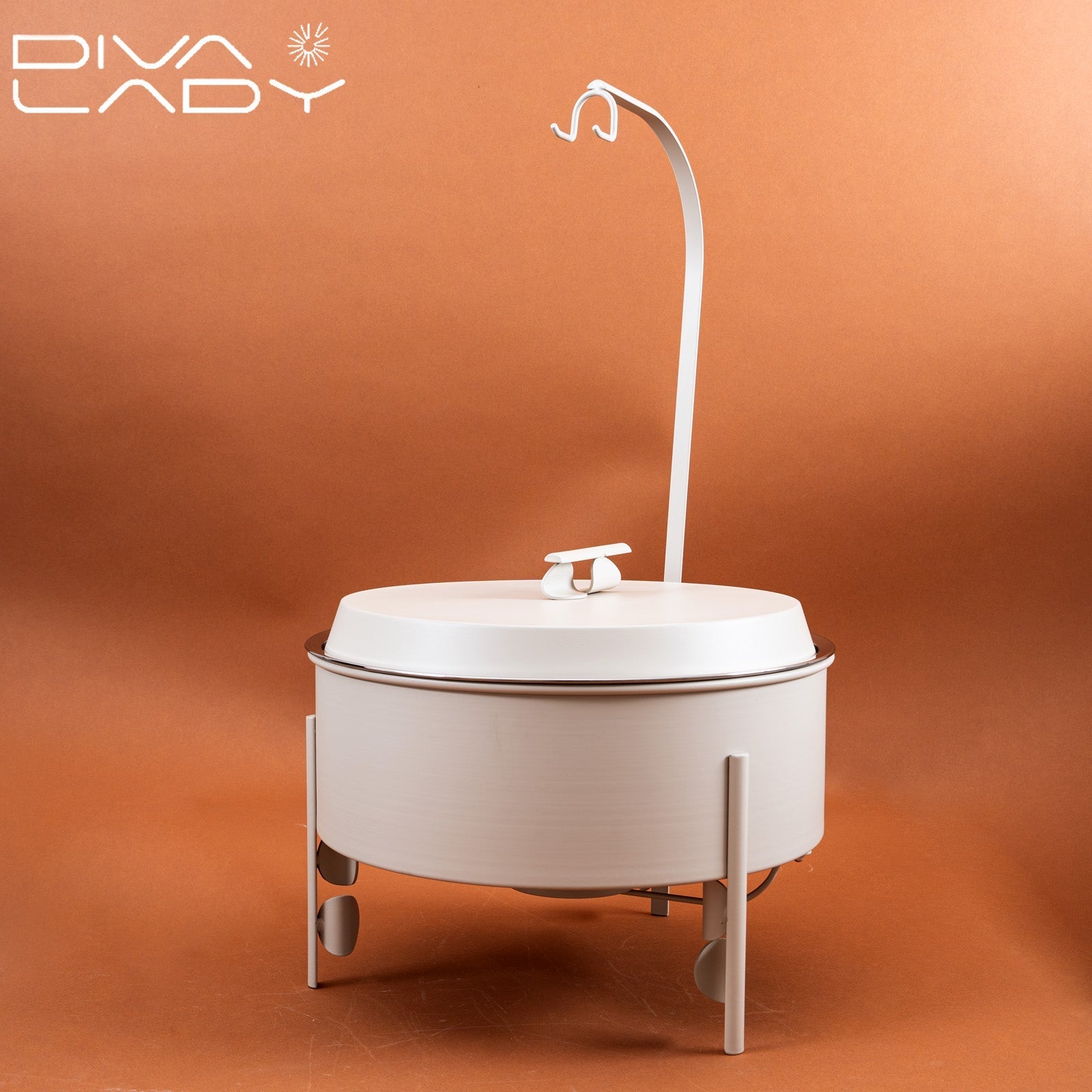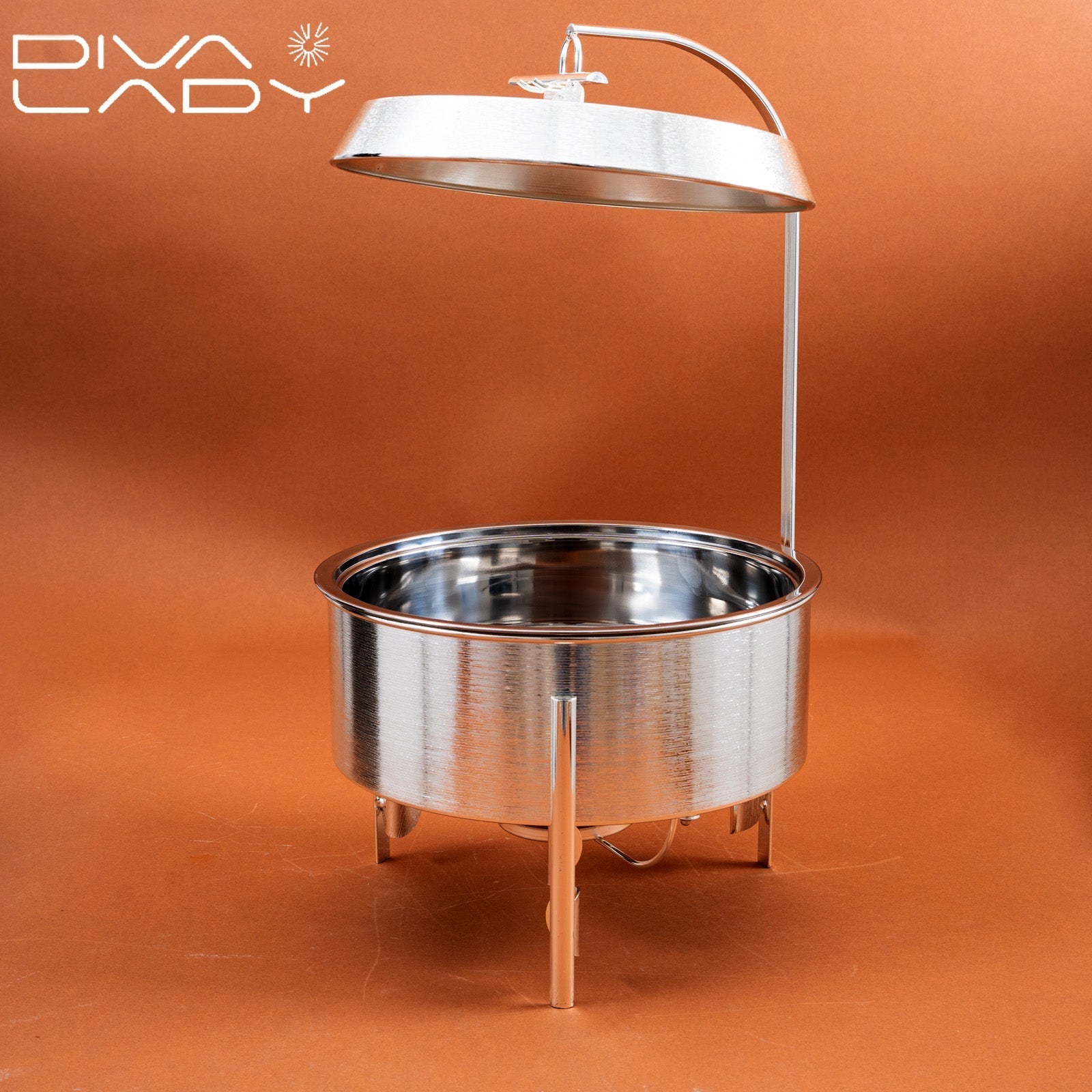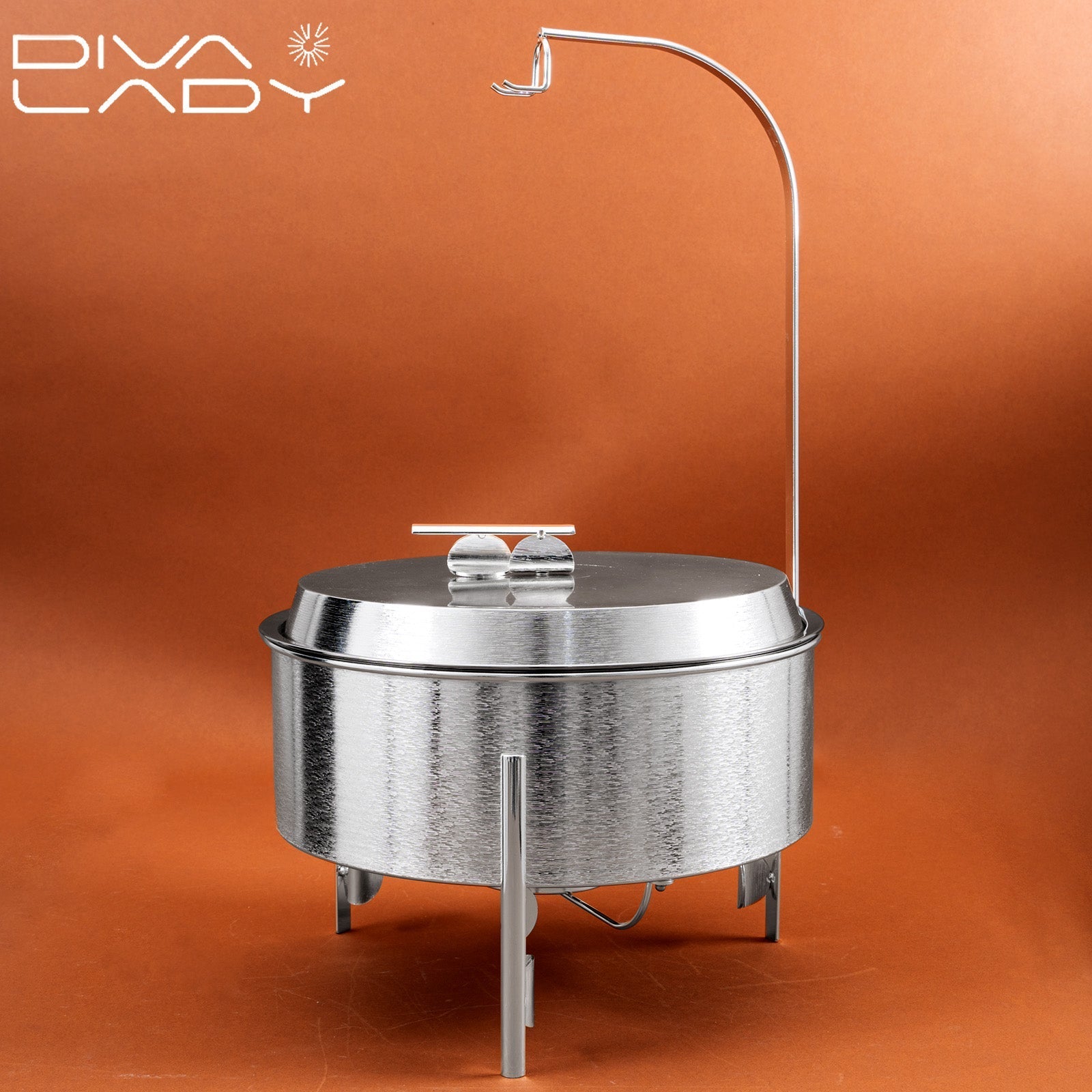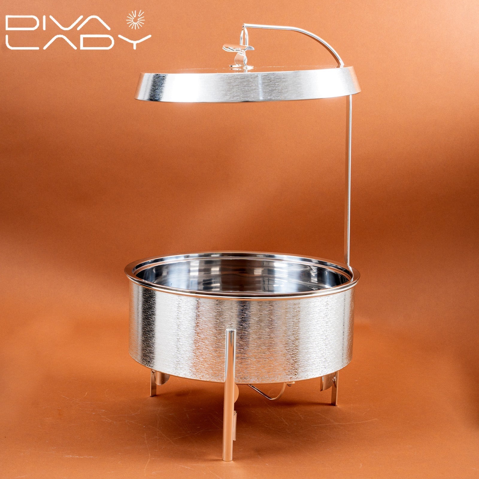 سخان طعام بتصميم أنيق يجمع بين الفخامة والعملية مصنوع من معدن بلمسة فضية لامعة، مع تفاصيل ذهبية أنيقة تعزز من جاذبيته يتميز بغطاء محكم للحفاظ على حرارة الطعام، وأرجل ذهبية تمنحه ثباتًا وأناقة. كما يحتوي على مقبض علوي منحني بتصميم عملي يسهل حمله ونقله مثالي للحفاظ على دفء الطعام في المناسبات والاجتماعات العائلية، مما يجعله إضافة رائعة لأي طاولة طعام