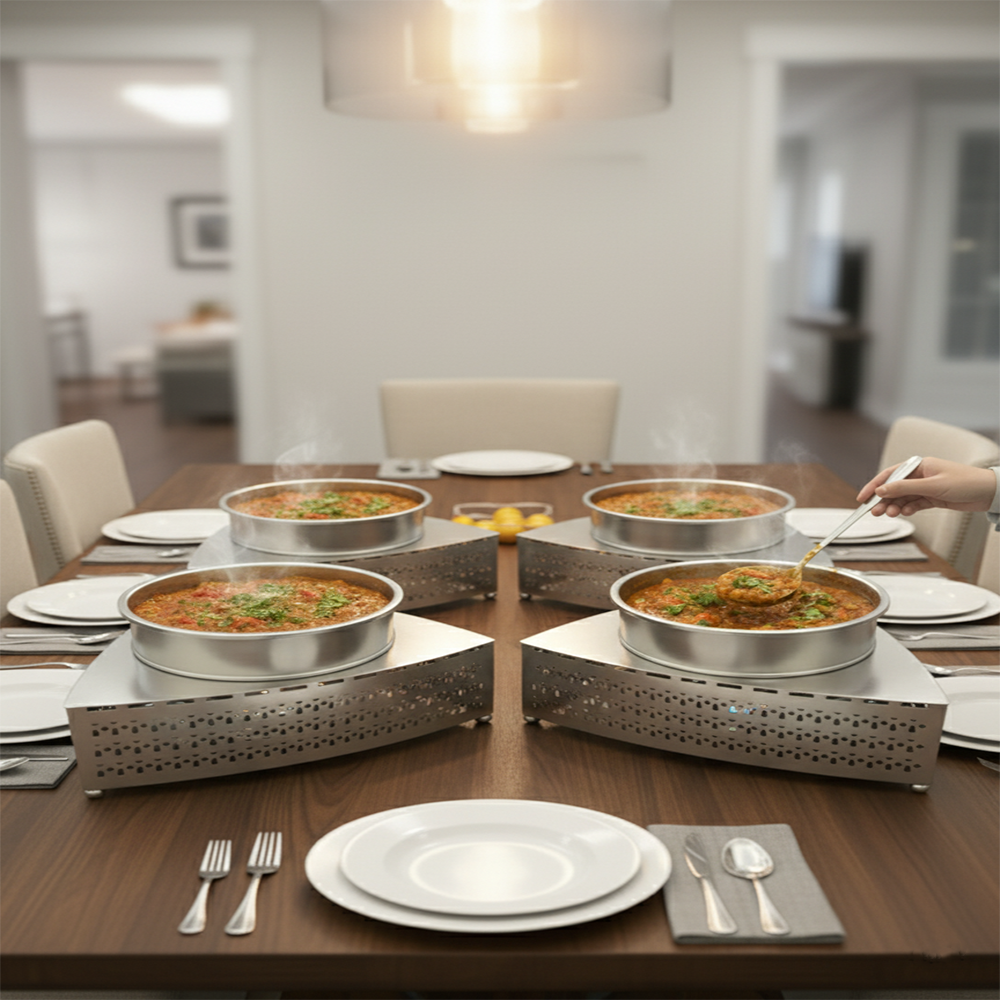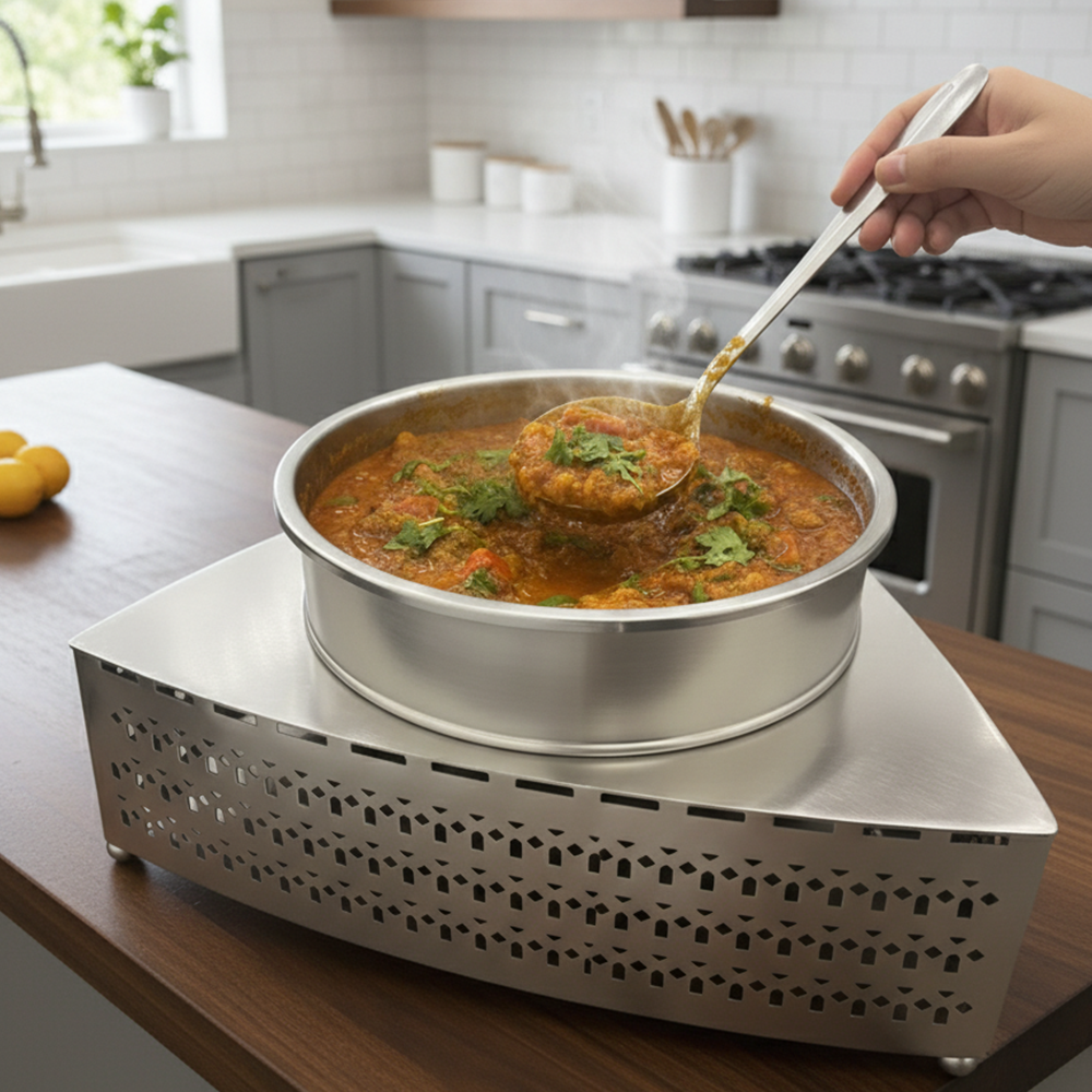 اختيارك المثالي لتقديم الأطعمة الساخنة مثل الكاري والطواجن مع نكهة لا تضاهى، بفضل المواد عالية الجودة المصنوعة من المعدن المقاوم للصدأ.