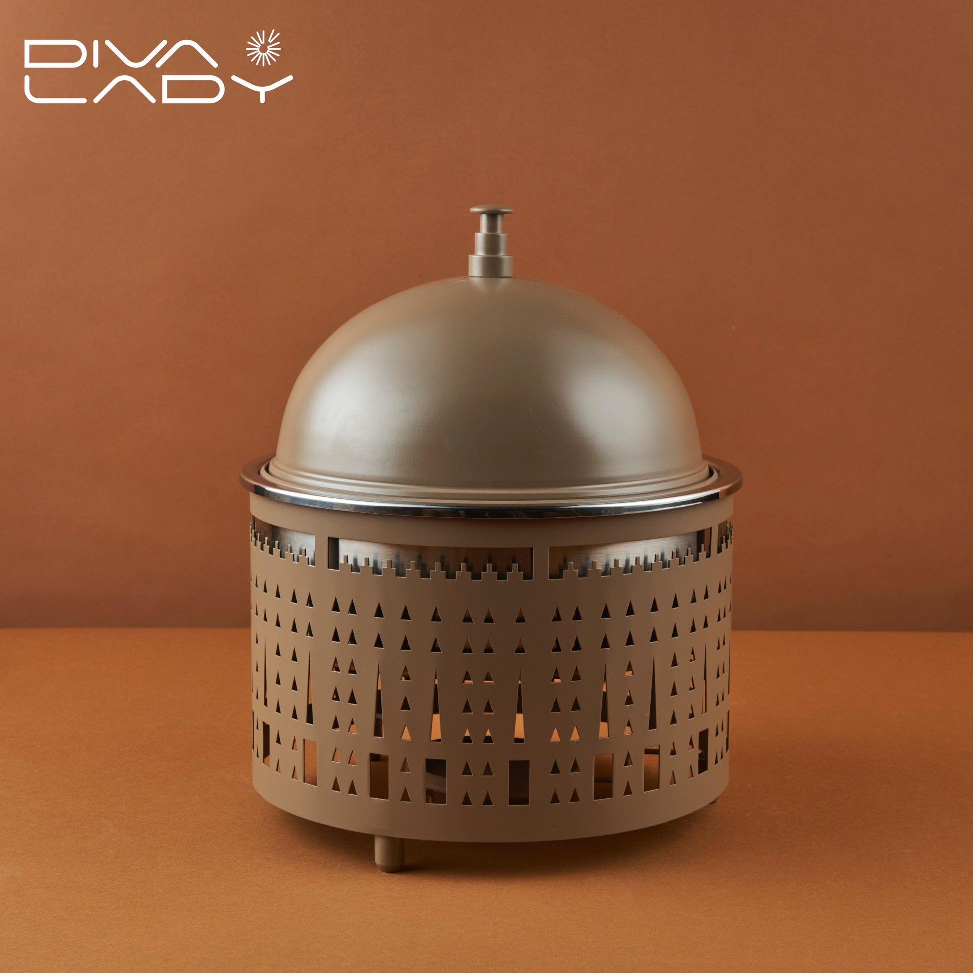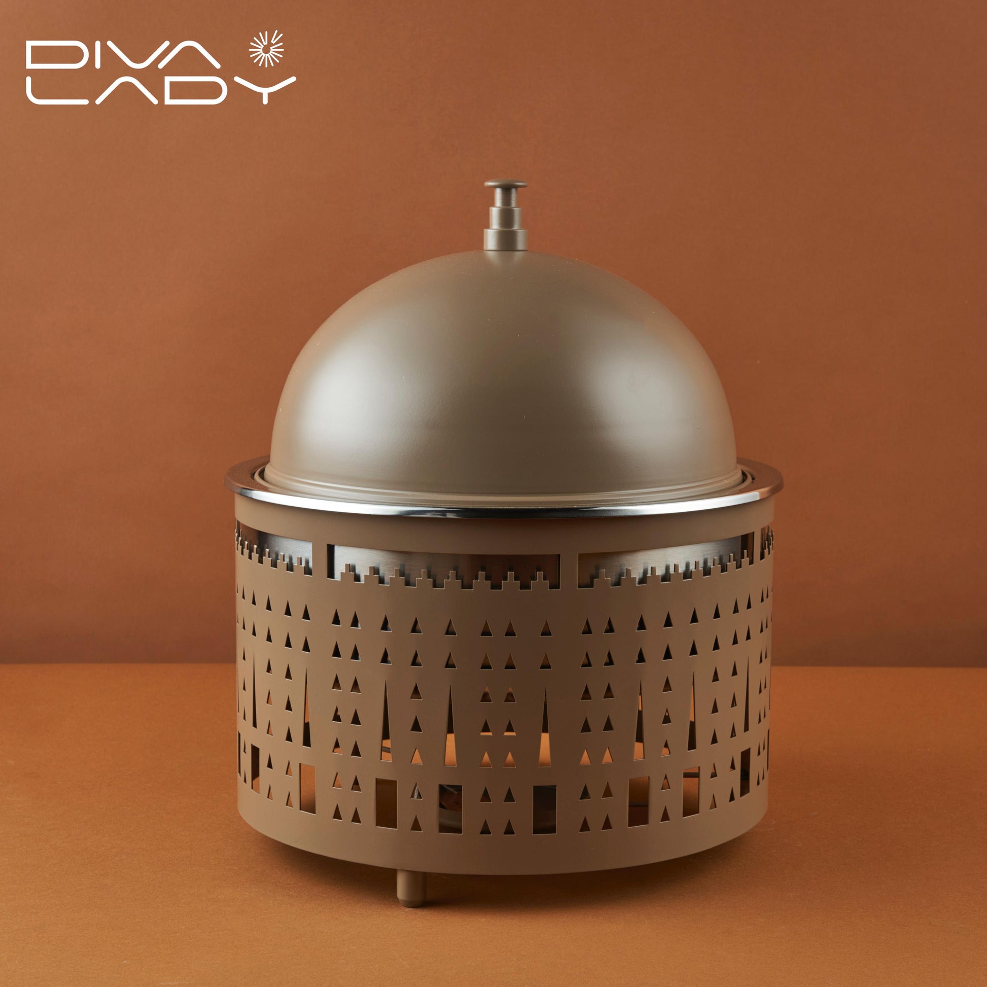 عباره عن وعاء لتقديم الطعام ويبدو انه مصنوع بتصميم معدنى انيق ومزخرف