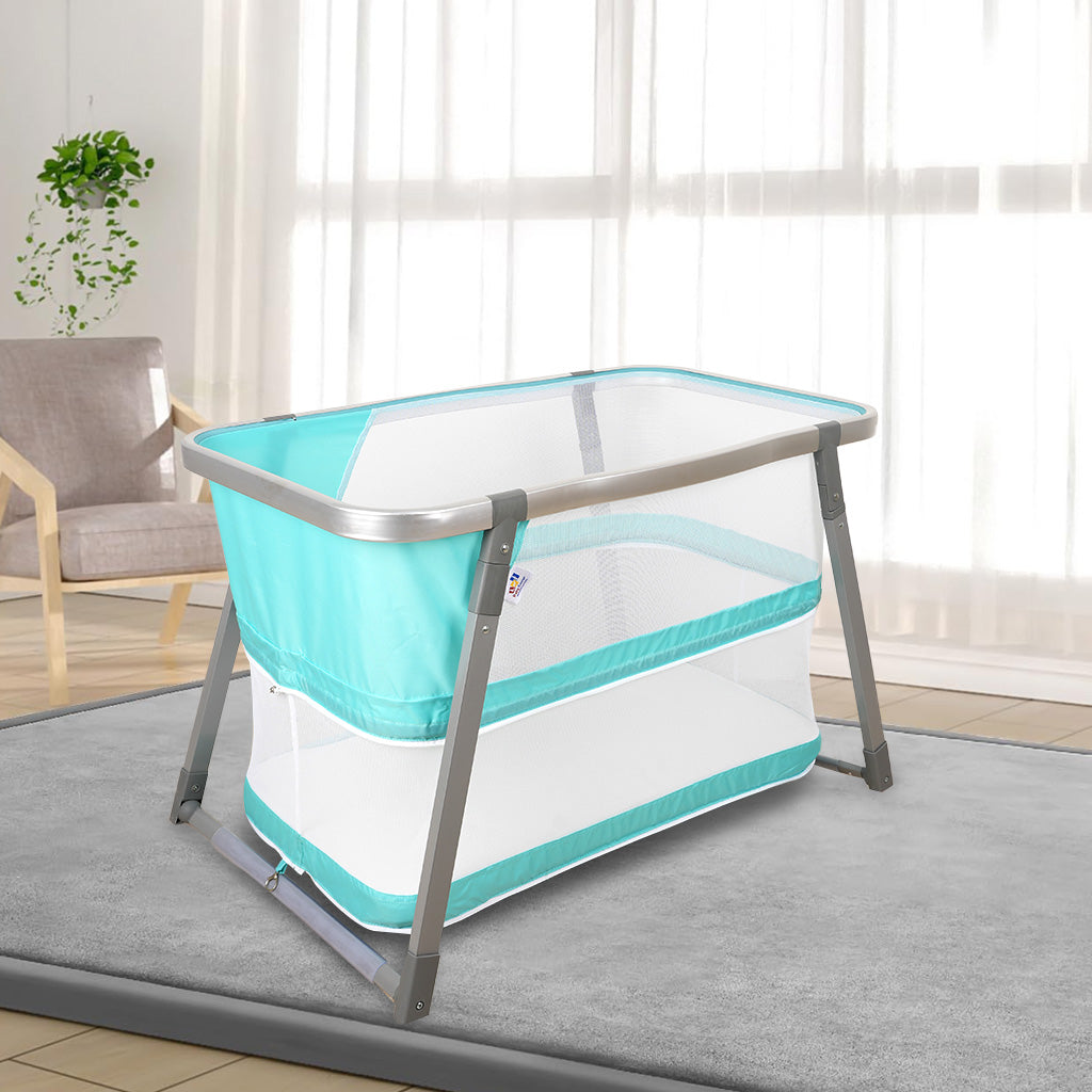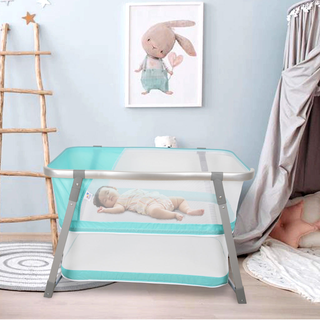 شبكة قابلة للتهوية: جوانب هذا السرير مصنوعة من نسيج شبكي ناعم وجيد التهوية، ليتمكن طفلك من التنفس من خلاله. تتيح لك الشبكة الشفافة مراقبة طفلك والنظر إلى الخارج. القماش والشبكة خاليان من مسببات الحساسية الضارة. جاهز للسفر - يأتي هذا السرير خفيف الوزن مع مرتبة ناعمة ومريحة. سهل التركيب والفك، مما يجعله مثاليًا للرحلات الطويلة والزيارات القصيرة للعائلة والأصدقاء. تُثبّت الأرجل بسهولة، وبمجرد إضافة مرتبة، يصبح لديك ملعب مثالي للمنزل أو السفر.
